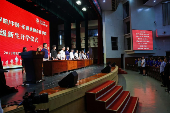 在学校大礼堂隆重举办2023级新生开学仪式和“开学第一课”。院党委书记陆善勇、院长李光辉、院党委副书记陈卉娟、副院长谭春枝、副院长梁权熙、院长助理、各系主任、各部门负责人、新生班主任、学生辅导员和蘑菇视频390名2023级全日制新生参加仪式。仪式由院党委书记陆善勇教授主持。