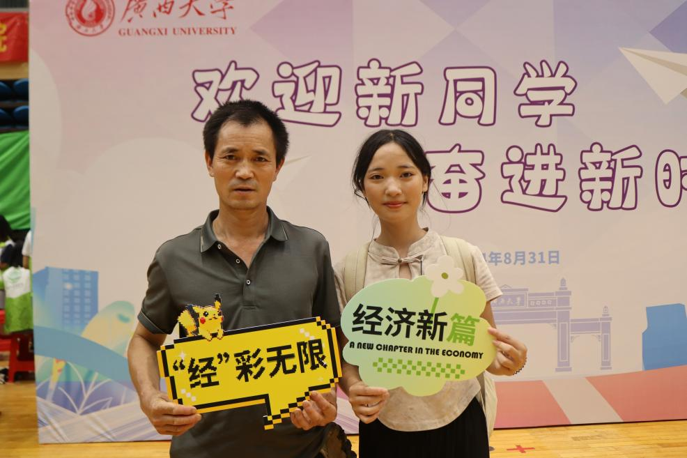 新生与家长们的笑颜被定格在相框中央