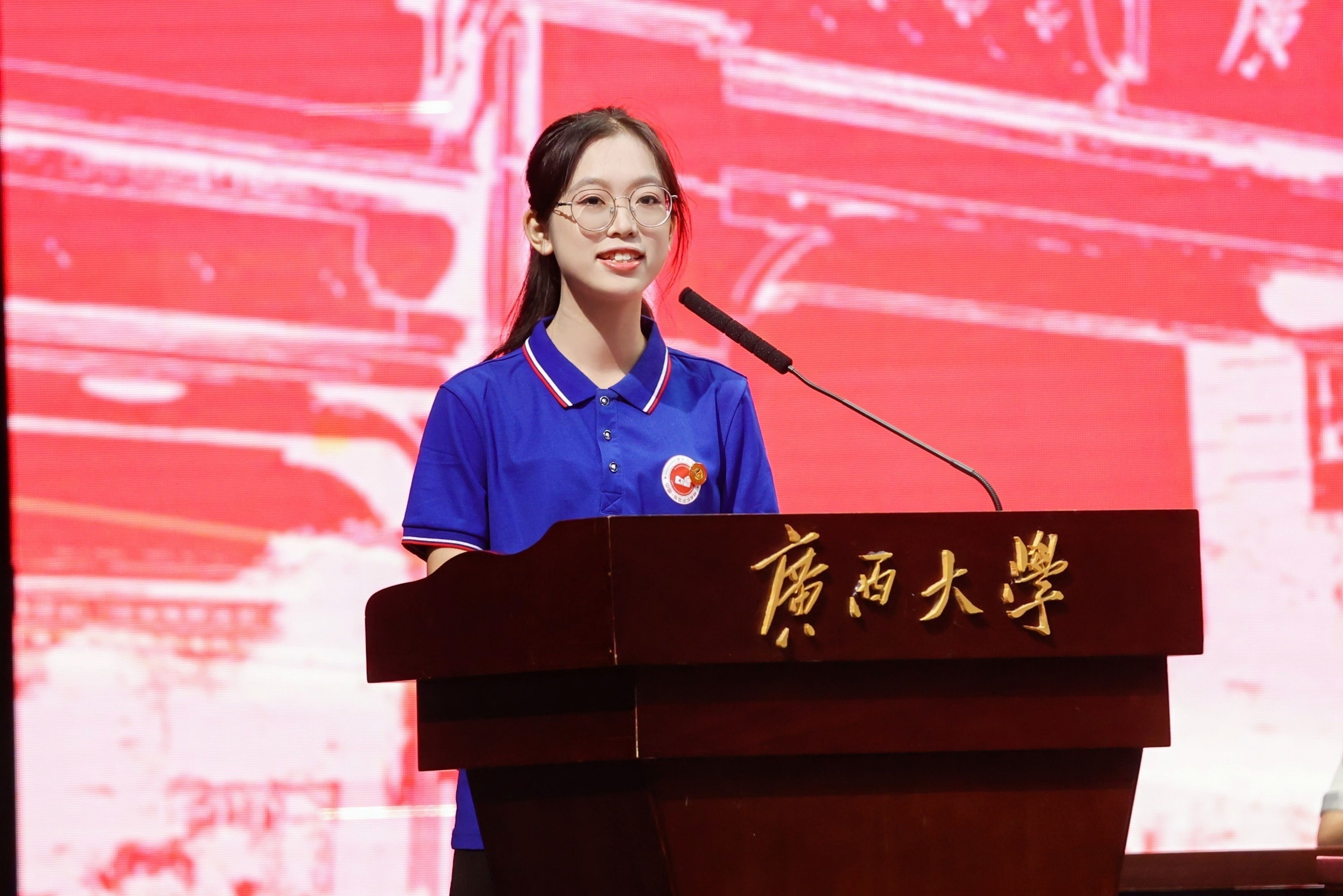 在校生代表、2022级金融专硕程子懿在发言中分享了自己在学校的学习经验与成长感悟:合理规划,勇于实践,探索符合自己的大学之路;下苦功夫,学真本领,培养契合社会发展的综合素养;磨练意志,强身健体,打好成长成才的健康基础,并祝愿学弟学妹在青春赛道上跑出最好成绩。