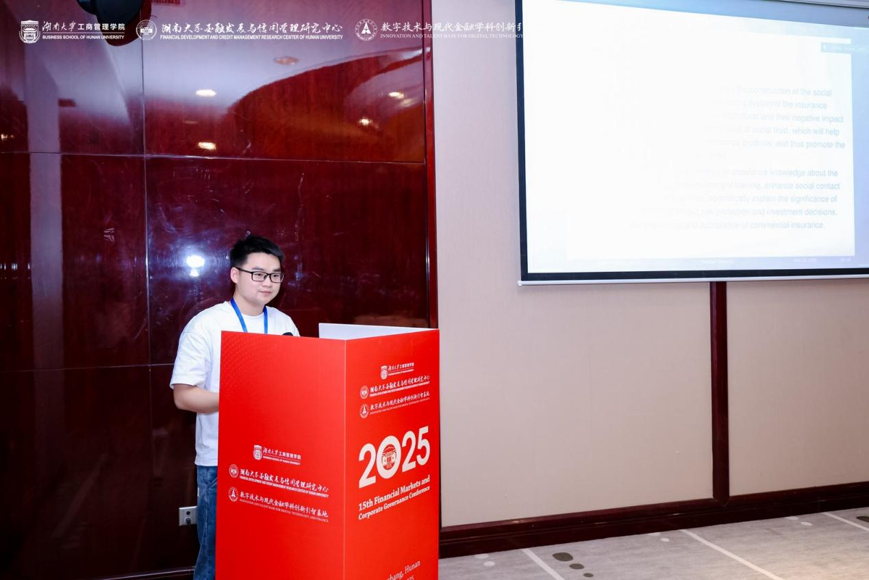There are 162 submissions in total , and only 20 outstanding papers were accepted. The paper, "Social Trust and Commercial Insurance Market Development: Chain of Evidence from Macro to Micro", co-authored by graduate student Li Zeheng was successfully shortlisted and invited to present during the Conference. Experts and scholars from Hunan University, Shandong University, Southeast University, Xi'an Jiaotong-Liverpool University, Massey University of New Zealand, Durham University and University of Stavanger all gave high praise to the paper and offered constructive suggestions for further improvement.