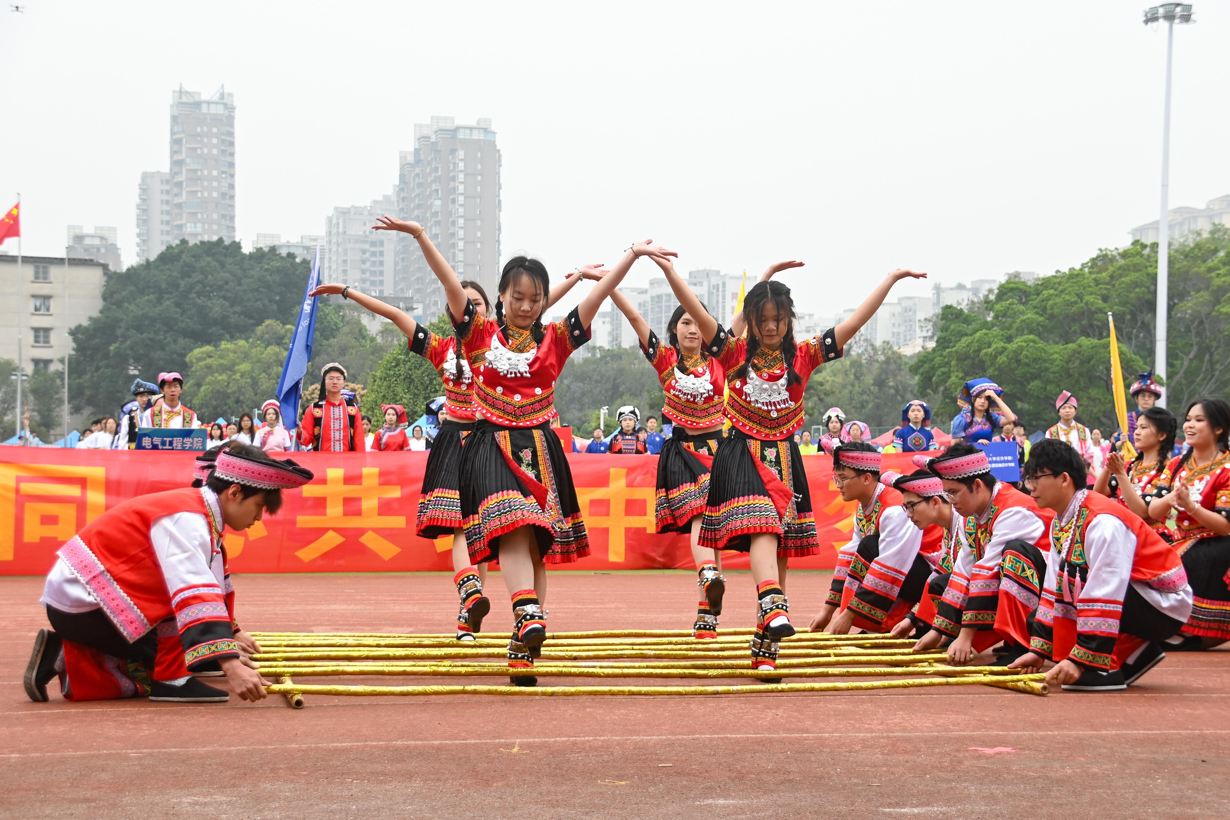 At the opening ceremony, spectacular performances by various colleges quickly ignited the atmosphere. Five hundred students from each college sang folk songs in unison, praising youthful vigor and showcasing ethnic styles. Laughter and songs filled the venue continuously, bringing about a vibrant ethnic atmosphere on campus. Archery, stilts walking, embroidered ball tossing, spinning tops, and other on-site activities were filled with the unique flavors of Guangxi! Teachers and students experienced traditional ethnic competitive activities, admired exquisite ethnic cultural exhibitions, felt the unique charm of ethnic fashion shows, and brought new vitality to "San Yue San".