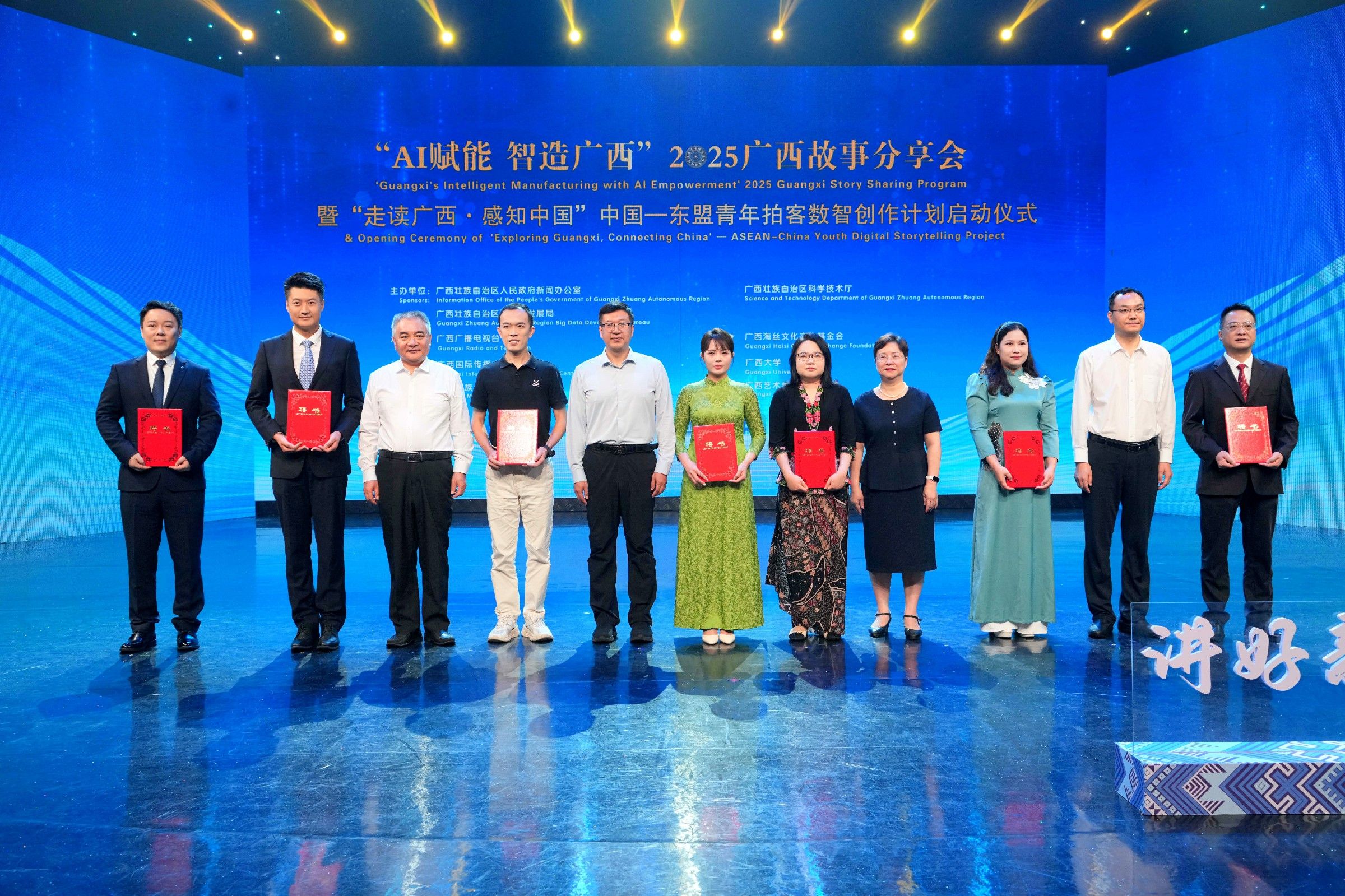 Recently, the 2025 Guangxi Story Sharing Conference themed “AI Empowerment: Intelligent Manufacturing in Guangxi” and Opening Ceremony of the “Exploring Guangxi, Connecting China” China-ASEAN Youth Digital Storytelling Project were held in Nanning. Nguyen Mai Duc, a Ph.D student majoring in Industrial Economics at our School, as an outstanding international student representative, vividly shared the facilitation of cross-border processes brought by the development of China’s smart logistics. It demonstrated outstanding contributions of the School in cultivating international talents and serving China-ASEAN cooperation.