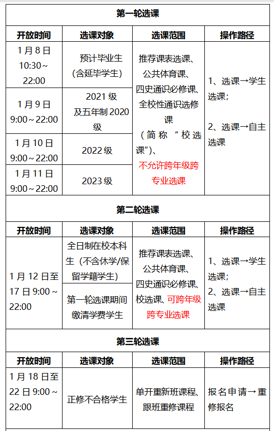 2023-2024学年第二学期网上选课定于2024年1月8日10:30分开始,本次选课按照分年级分轮次的原则进行,请各蘑菇视频