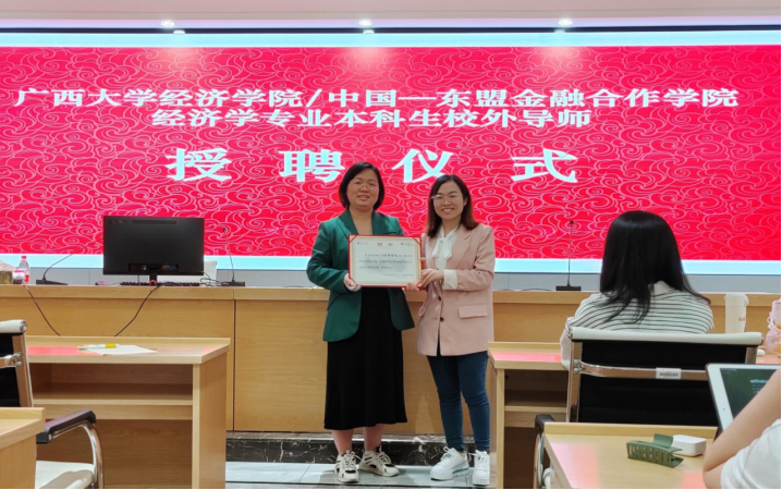 盛玉雪院长助理为黄金凤老师颁发校外导师聘书