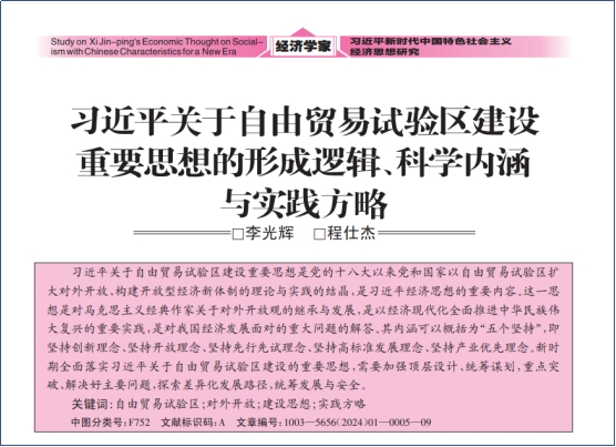 近日,蘑菇视频李光辉教授、程仕杰博士研究生撰写的论文《习近平关于自由贸易试验区建设重要思想的形成逻辑、科学内涵与实践方略》在《经济学家》2024年第1期(总第301期)正式发表。