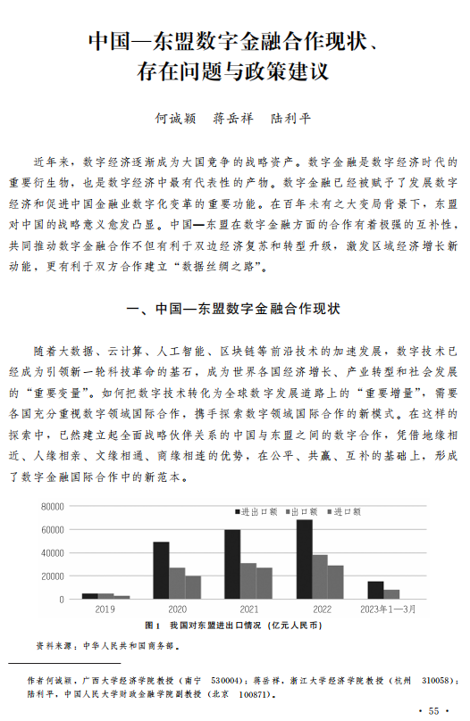 近年来,数字经济逐渐成为大国竞争的战略资产。数字金融是数字经济时代的重要衍生物,也是数字经济中最有代表性的产物,数字金融已经被赋予了发展数字经济和促进中国金融业数字化变革的重要功能。在百年未有之大变局背景下,东盟对中国的战略意义愈发凸显。中国—东盟在数字金融方面的合作有着极强的互补性, 共同推动数字金融合作不但有利于双边经济复苏和转型升级,激发区域经济增长新动能,更有利于双方合作建立 “数据丝绸之路”。
