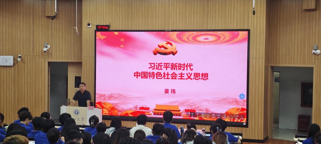 姜玮书记以习近平新时代中国特色社会主义思想为题讲授开班第一课。课程围绕该思想的命名缘由、形成过程、理论创新、精神实质等核心问题展开系统讲解。姜书记指出,这一思想是马克思主义中国化的最新成果,是全党全国人民的行动指南。他详细阐释了思想在多个方面开辟的新境界,重点解读了新思想其"新"在时代背景、实践基础、历史使命等丰富内涵,并系统梳理了新思想的精神实质与精髓。姜书记授课深入浅出,为学员们接下来的系统学习奠定了坚实基础。