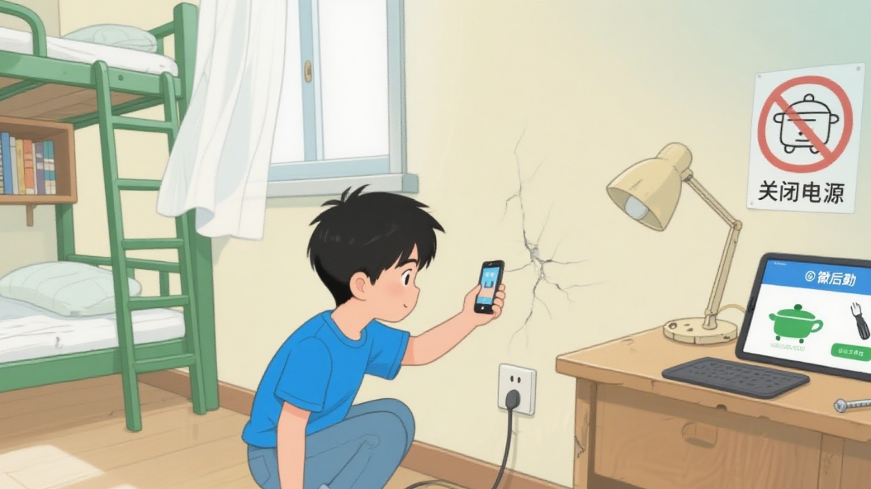 返校后,先检查宿舍电器线路是否有老化、破损,插座是否松动,台灯、风扇等电器能否正常工作;查看桌椅、床铺是否有螺丝松动、断裂等情况,若发现异常,立即通过“蘑菇视频