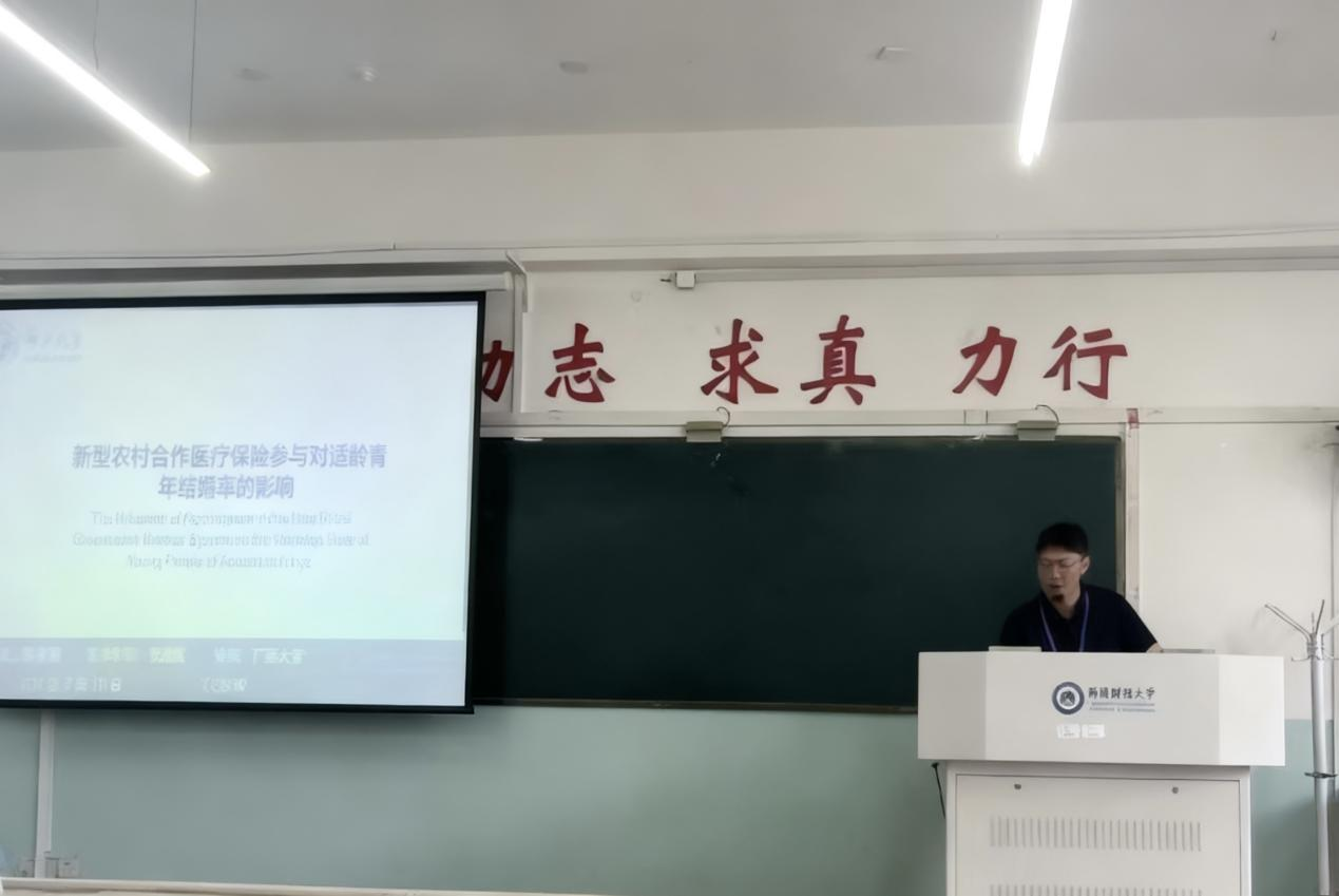 蘑菇视频2024级应用经济学专业硕士研究生陈永龙受邀参加会议,并在“养老金与社会保障”分论坛上汇报了与导师张瑞纲副教授合作的研究《新型农村合作医疗保险参与对适龄青年结婚率的影响》。该论文主要基于CFPS数据,运用Logit模型、PSM等方法,以“未来生活信心”“务工回流收入”为关键中介变量,实证研究了新农合对适龄青年结婚率的正向影响,并进行异质性与稳健性检验。