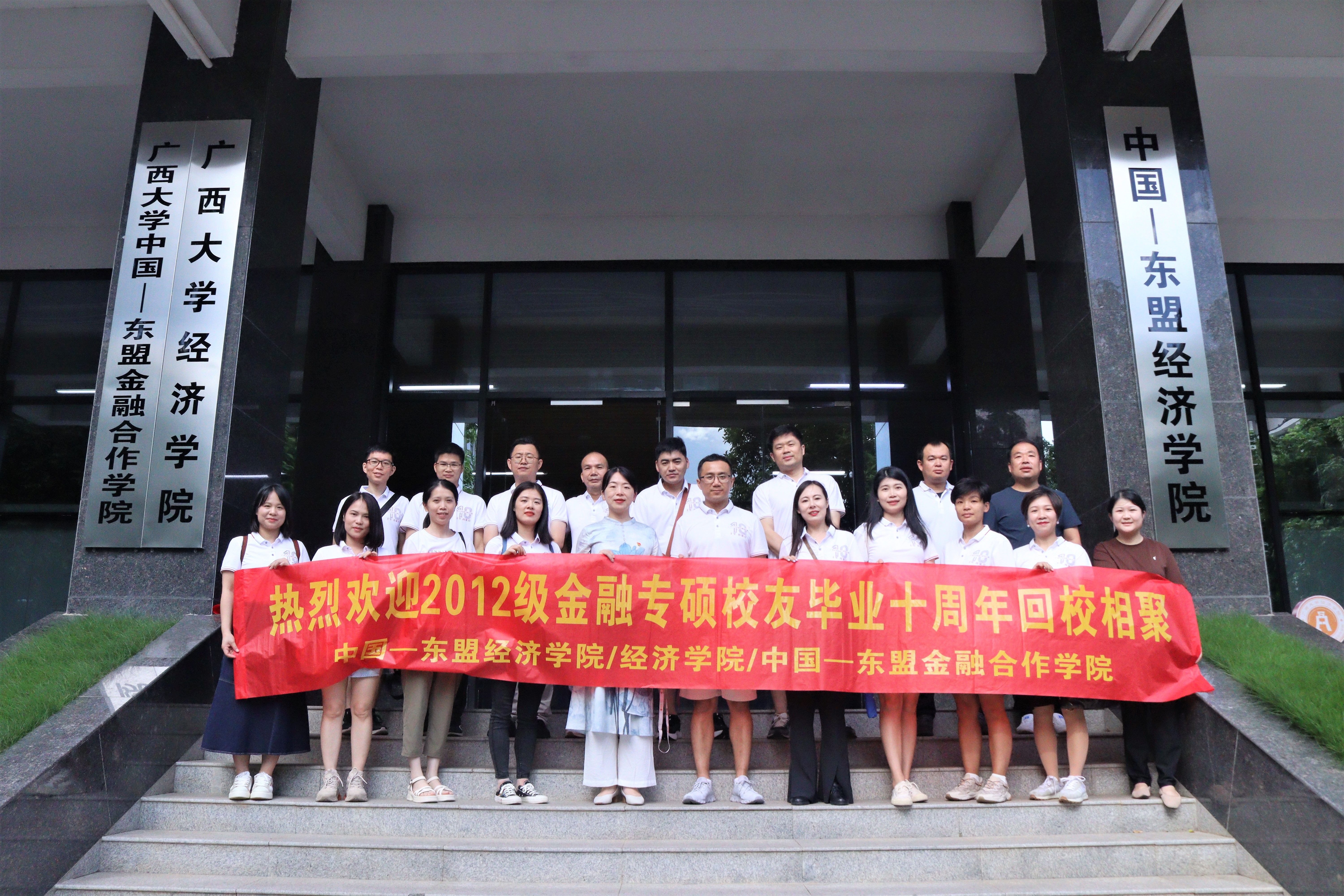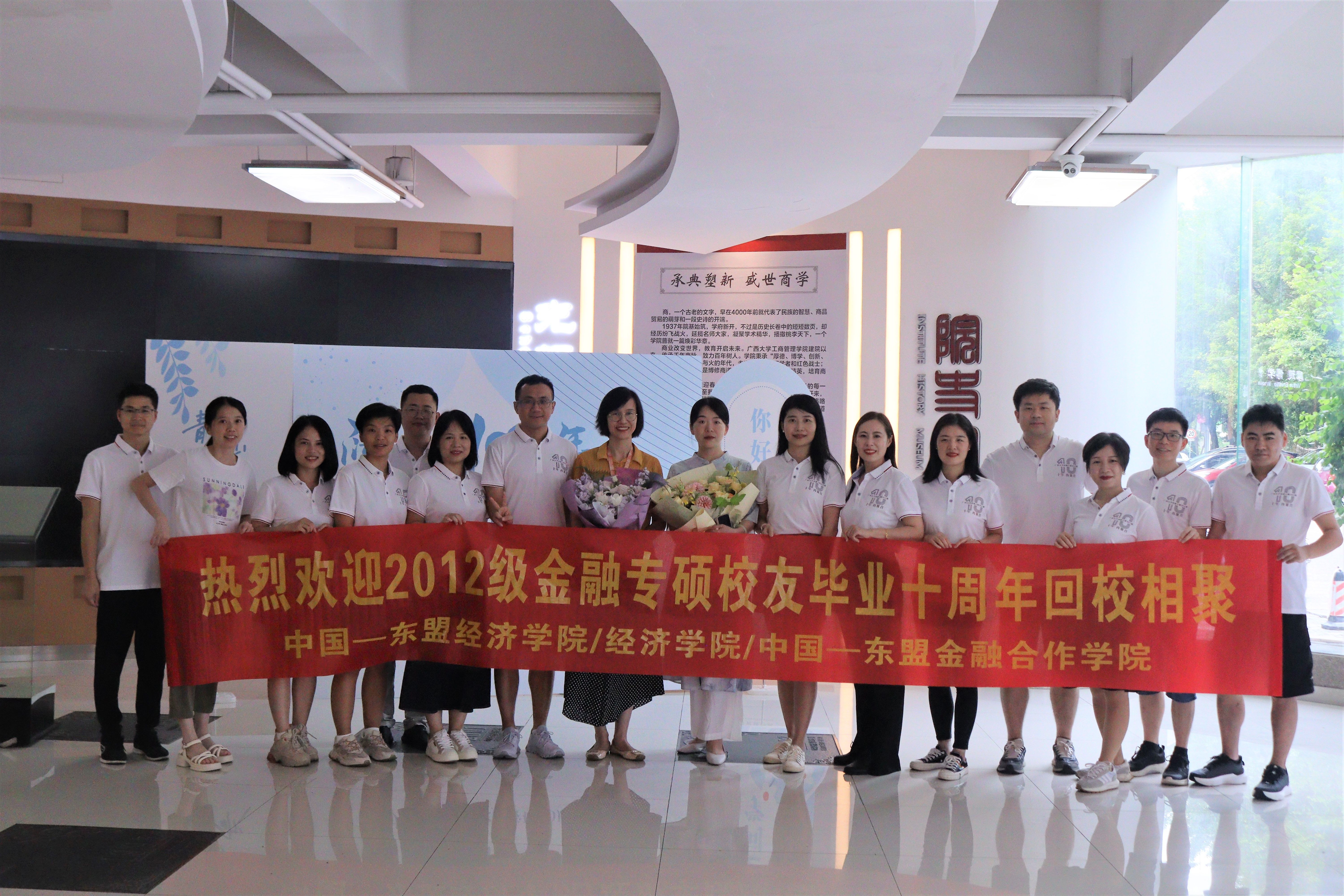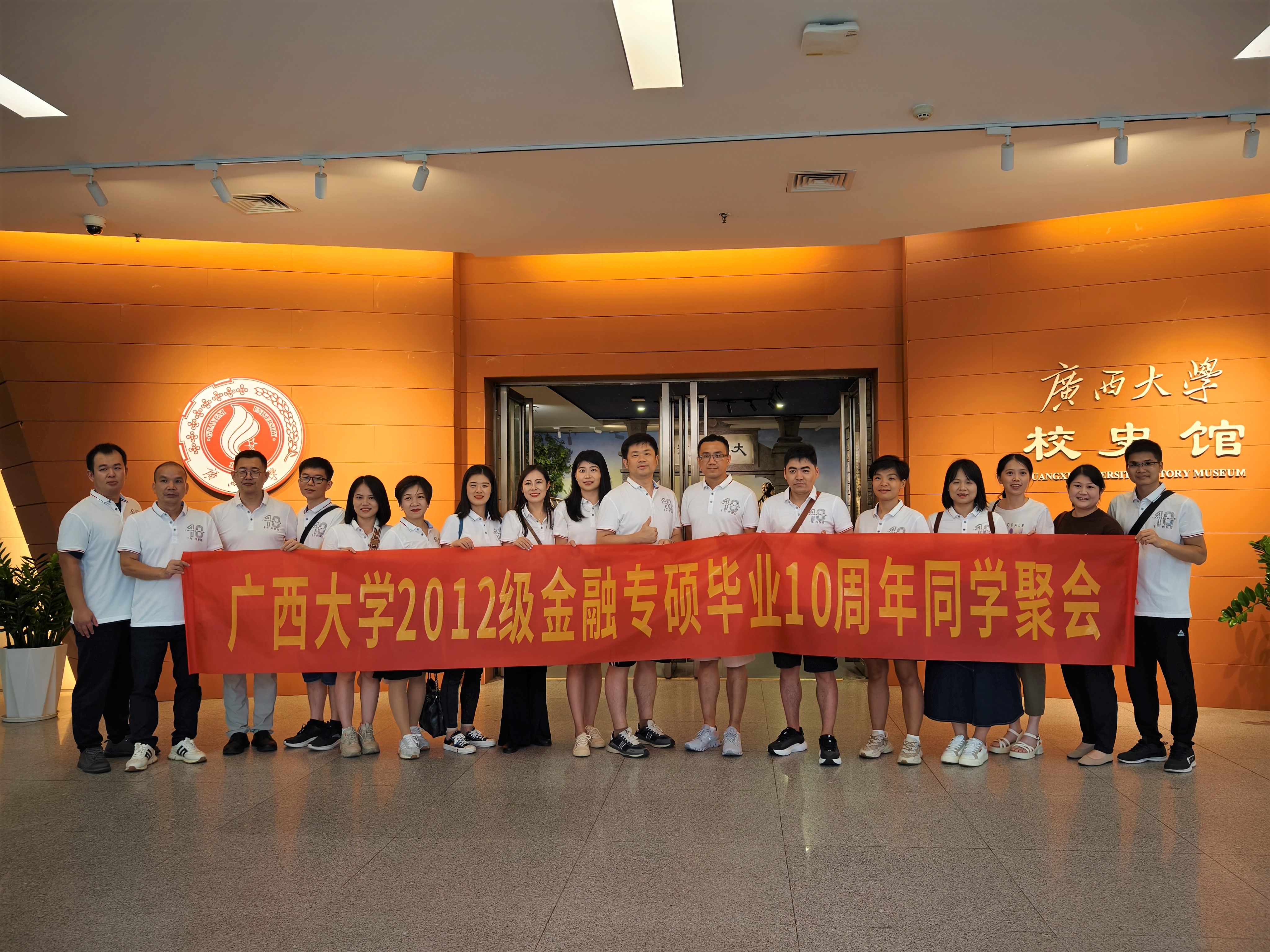 2012级金融专硕校友齐聚南宁,重返母校,在MBA大楼315会议室庆祝毕业十周年,共叙师生情谊,重温青葱岁月。