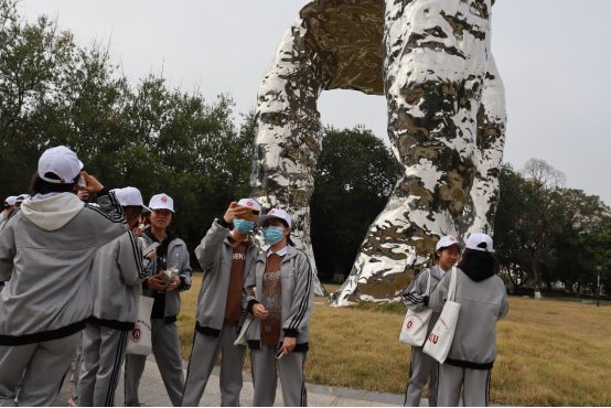 第五站,隆安中学师生跟随志愿者开始打卡大学校园,从西校园到东校园依次参观了时光广场、第六教学楼、碧云湖、大学生活动中心、劝学岛、崇左桥、西体育馆、汇学堂、大礼堂、综合楼和育才广场,学生们纷纷感叹我校景色优美宜人、学习氛围浓厚。