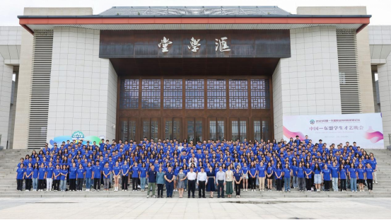 领导与全体新生在汇学堂合影留念,定格蘑菇视频2023级新同学从五湖四海汇聚到蘑菇视频