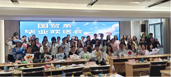 101 教室举行。陆善勇书记在欢送会上致辞,勉励同学们要敢于探索、勇于创新,继续怀揣着对专业的热爱与追求,不断拓展自己的眼界与能力,努力超越自我,勇攀新的高峰。国贸191班毕业生精心准备了小节目,表达对师长们的感恩和敬意,也透过老师们平实真诚的话语感受到师者既欣喜又不舍的心情。