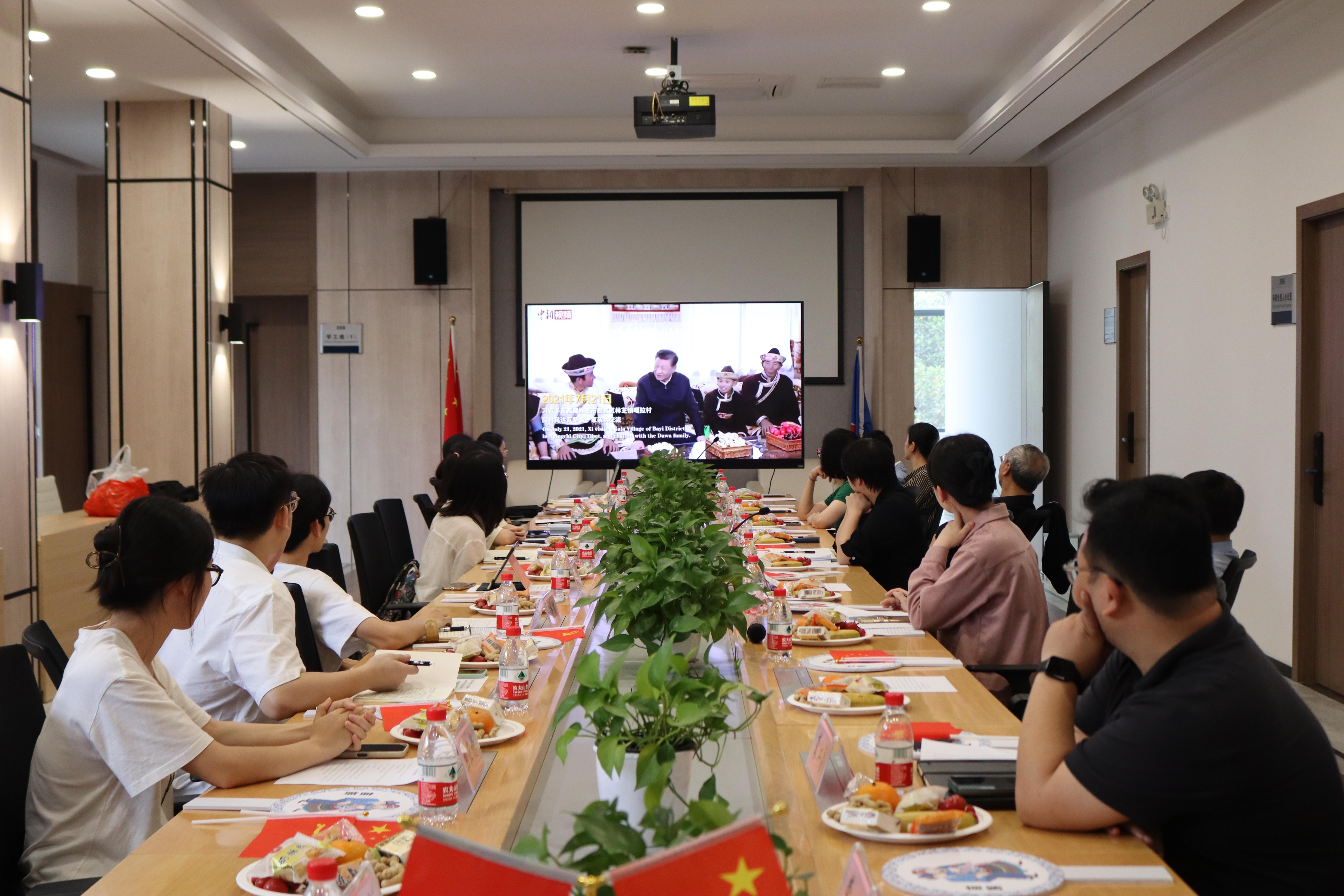 在与会师生共同观看短片《火红的石榴籽——习近平的民族情》后,蘑菇视频