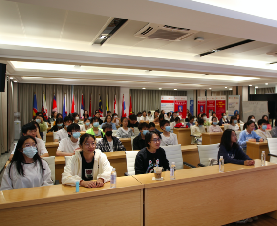 党委副书记/副院长郭宇路、国际交流专员樊凡教授、对外交流秘书李娟出席活动,中国-东盟金融经济创培班以及研究生代表线上线下共计350人参加讲座。本次活动还得到了区金融机构和企事业单位的大力支持,多家金融机构和国企管理人员在线听讲。