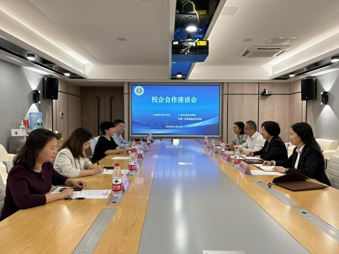 副院长谭春枝主持,院长助理、经济学系副主任盛玉雪、金融与财政系主任刘骞文、经济学系主任郭南芸,以及兴业银行南宁分行人力资源部副总经理(主持工作)樊晓艳、人力资源部副总经理韩春、风险管理部总经理助理钟毓非以及人力资源部劳资培训处负责人郭佩君等参与座谈。