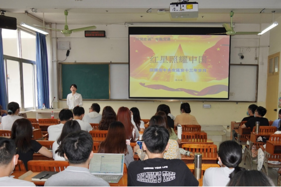 博士生党支部、研究生2019级第三党支部和研究生2021级第一党支部的党员们齐聚东校园10B-305教室,院党委副书记、纪委书记陈卉娟为大家讲授了专题党课“红星照耀中国”。