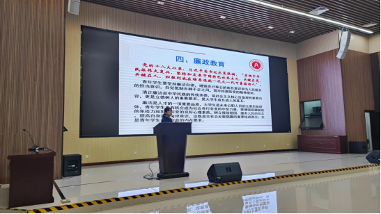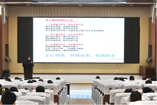 一楼报告厅召开2022届毕业生大会。院党委副书记、纪委书记陈卉娟为全院三百余名毕业生上廉政专题党课。