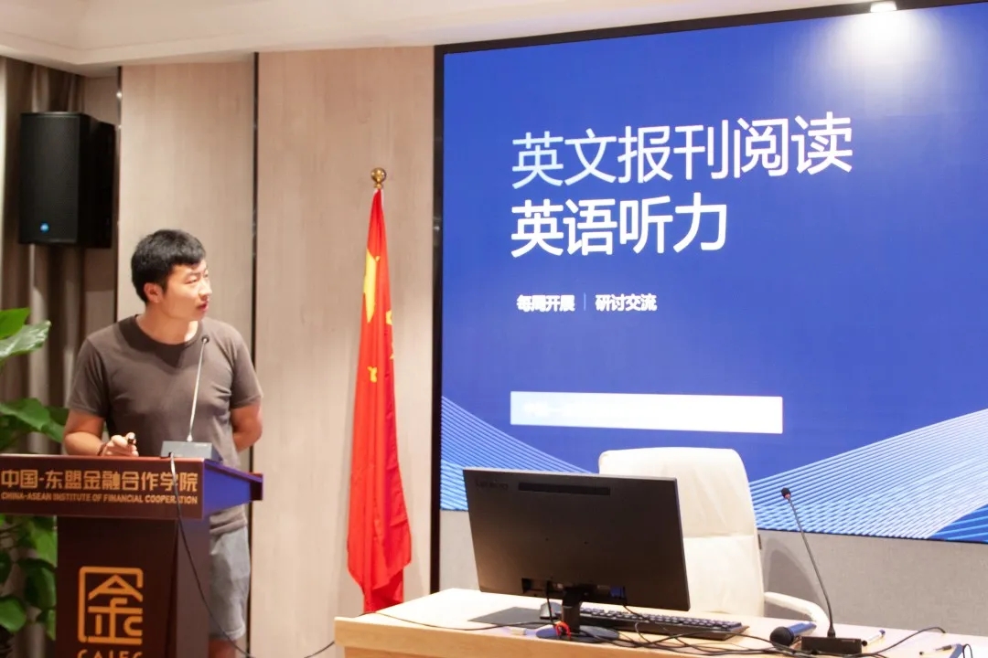 研究生会学思部组织的英语特色系列活动。其中,英语金融报刊阅读是在每周六组织同学们选择《华尔街日报》(The Wall Street Journal)及《金融时报》(Financial Times)中的文章进行阅读翻译,并互相进行分享。旨在通过定期组织同学们集中阅读原汁原味的金融、商业领域的全英文纸质报刊,增强同学们的金融素养及专业英语能力,提高同学们的英语学习与应用能力。