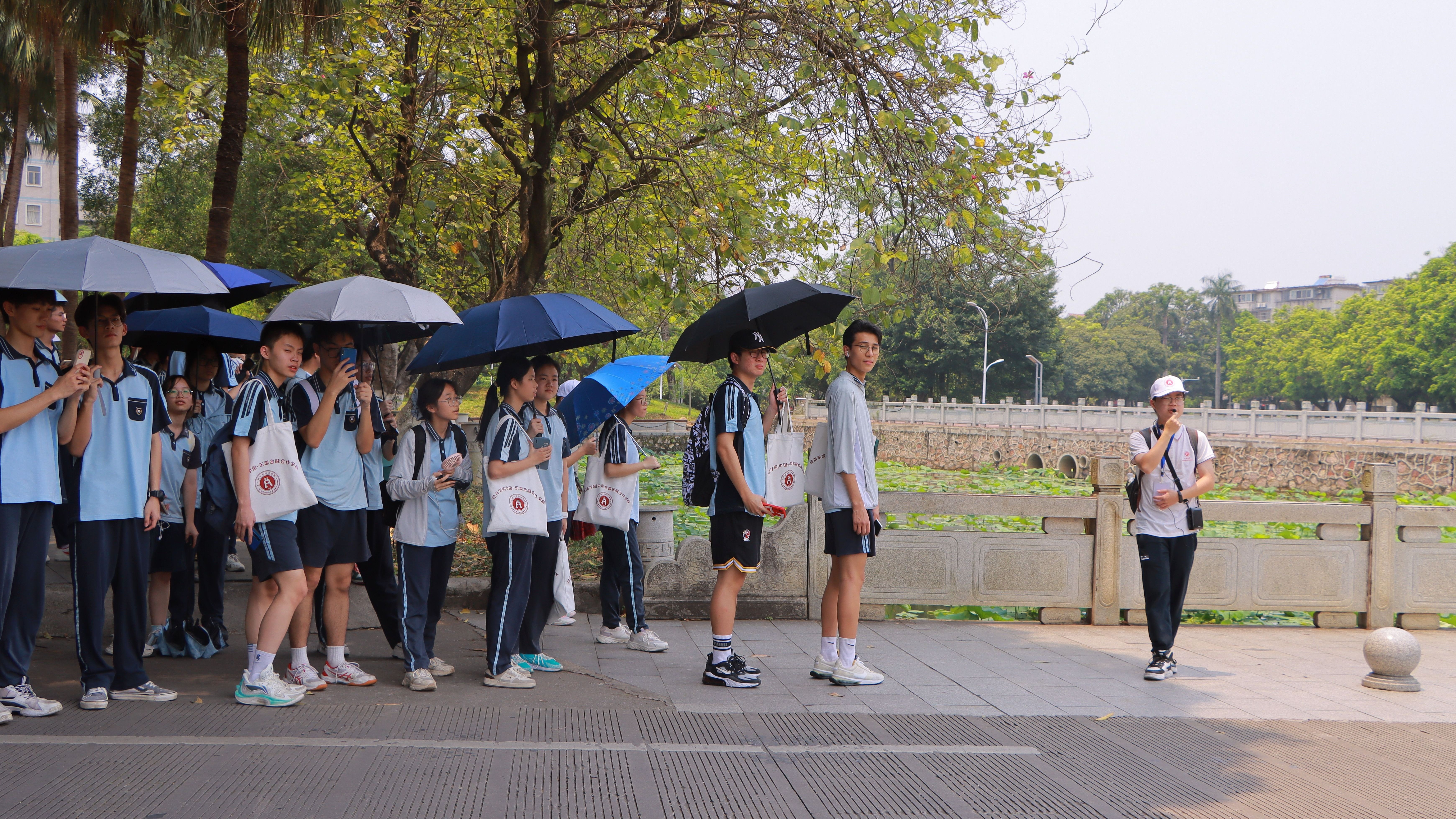 第四站,南宁市第四中学师生在讲解员和志愿者的引领下,兴致勃勃地开始了大学校园打卡之旅。从东校园到西校园,他们依次领略了时光广场的历史韵味,欣赏了碧云湖的宁静美景,感受了大学生活动中心的青春色彩,品味了劝学岛的古朴典雅,走过了崇左桥的古典风韵,体验了文创店的独特创意,参观了威严的汇学堂与大礼堂,感受了综合楼的现代气息,最后沉浸在育才广场的氛围中。同学们对我校如画的风景和浓厚的学习氛围赞不绝口。