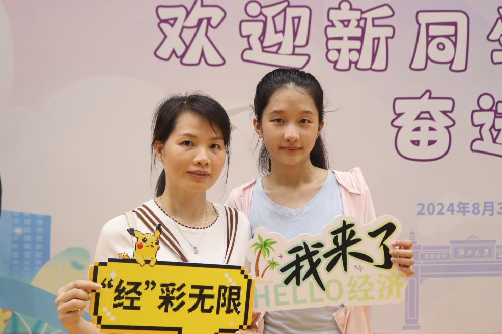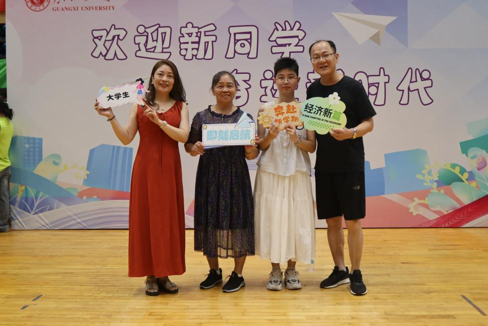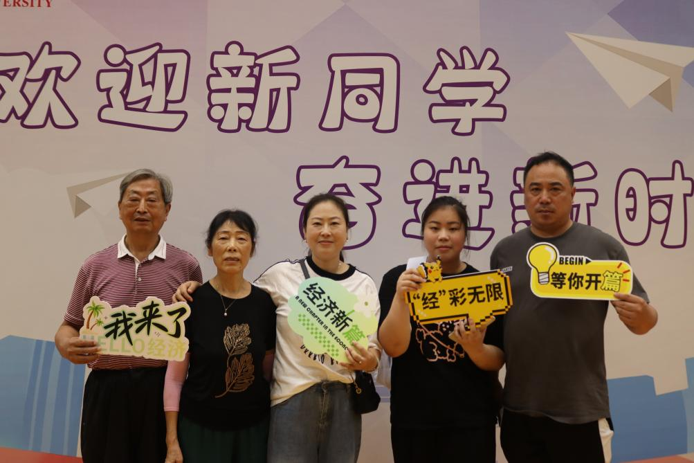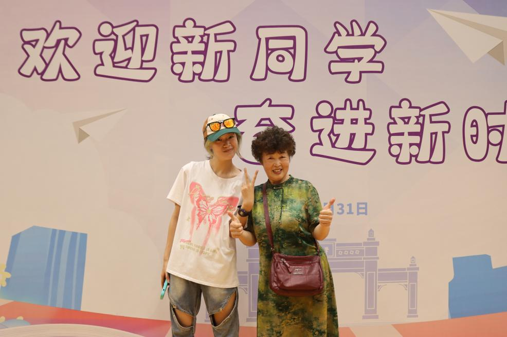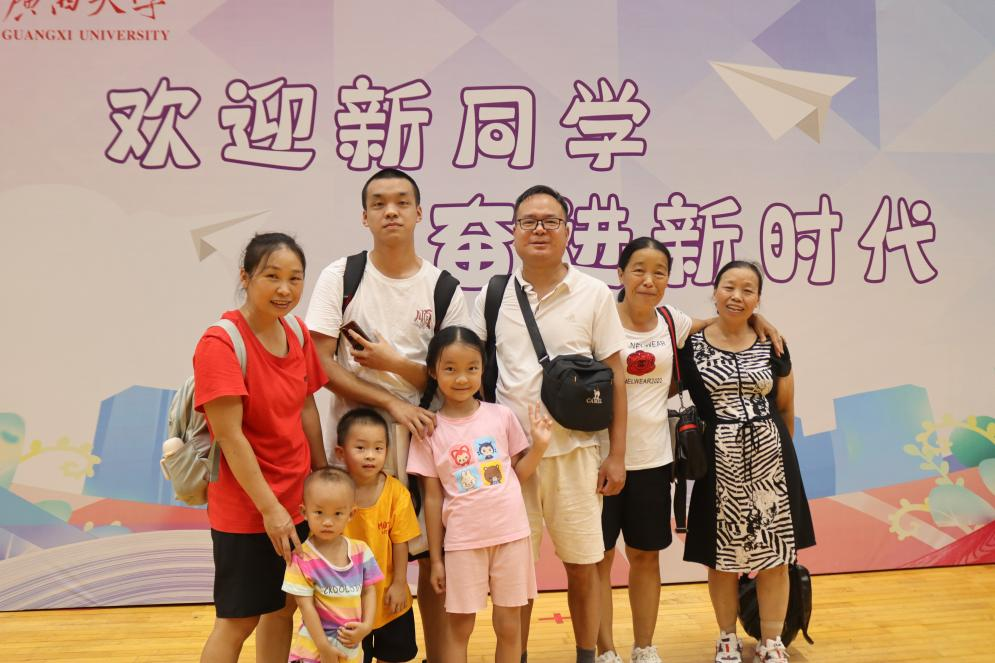 新生与家长们的笑颜被定格在相框中央