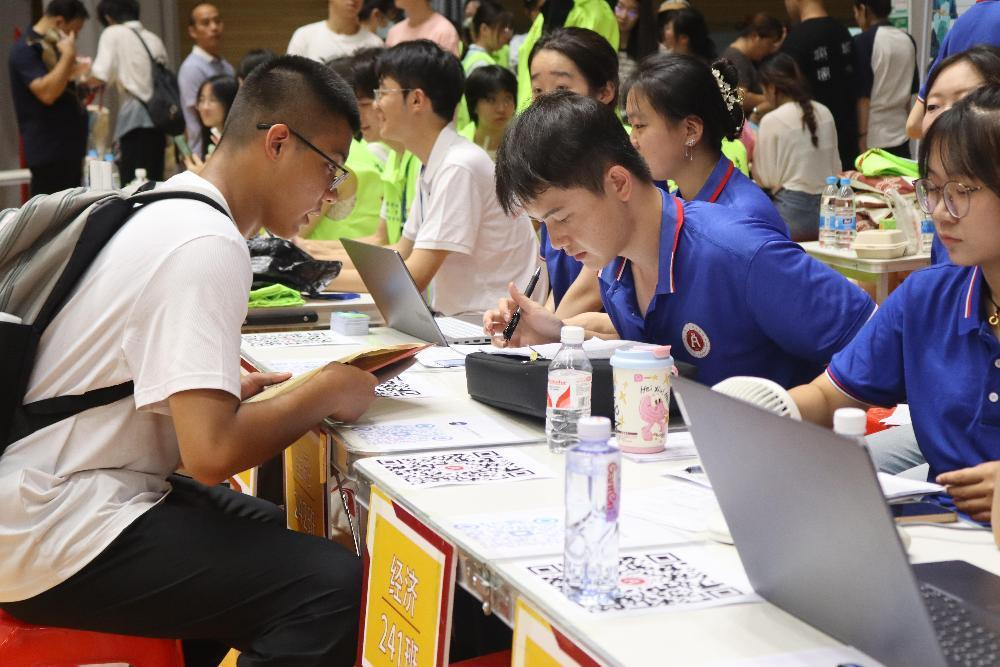 新生们在学长学姐热情细致的引导下
