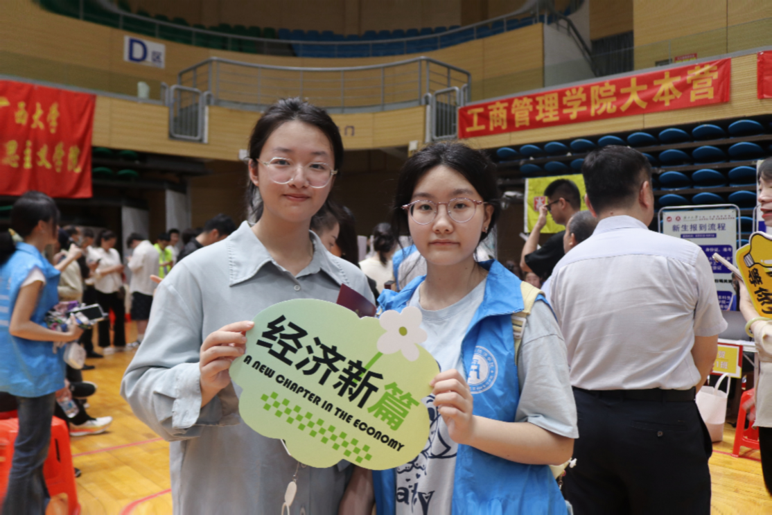 都来到蘑菇视频新生报到点迎接新同学
