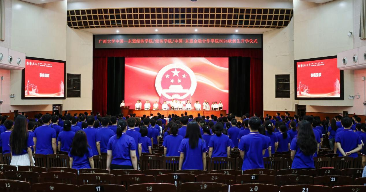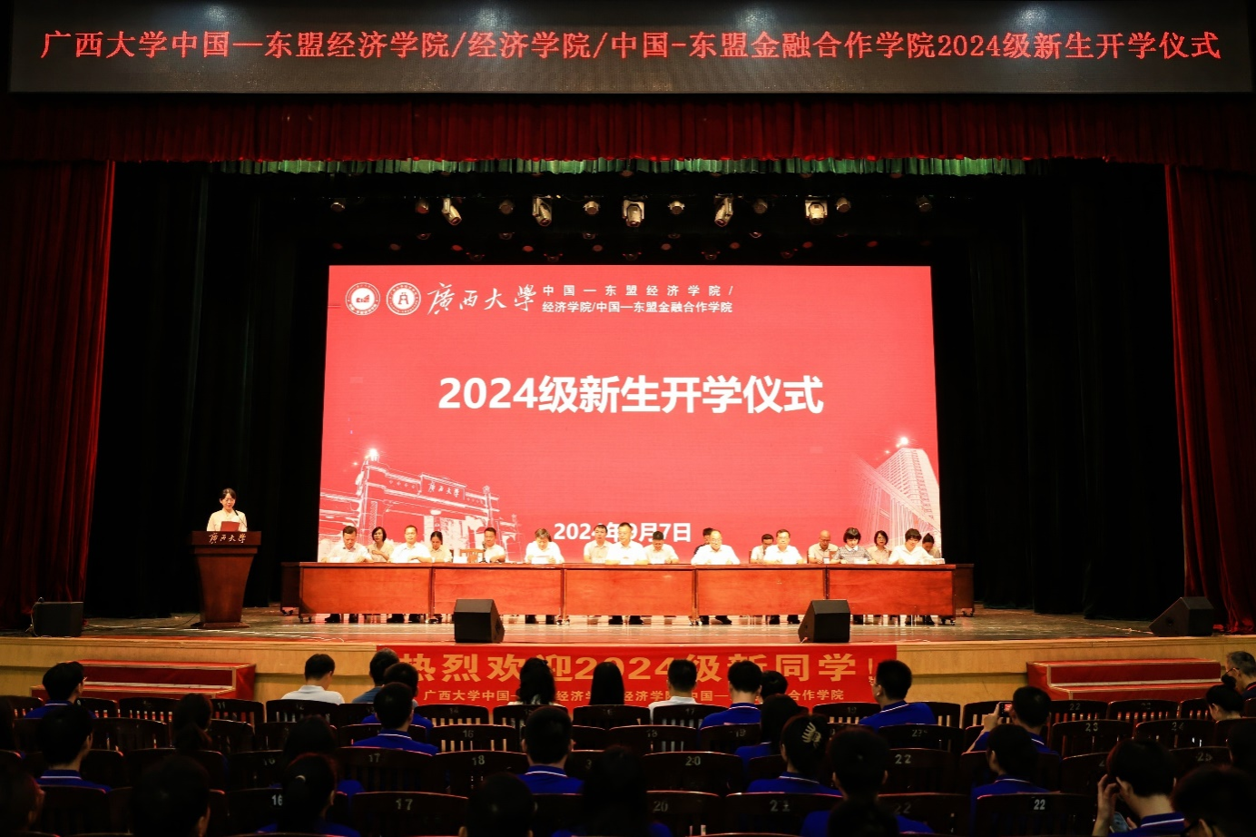 在学校大礼堂为2024级533名新生举行开学仪式,校党委常委、副校长、院党委书记(兼)夏国恩,院党委常务副书记罗诚,院长李光辉,常务副院长梁运文,院党委副书记、纪委书记陈卉娟,副院长谭春枝,副院长梁权熙,副院长杨璞出席仪式,陈卉娟主持仪式。