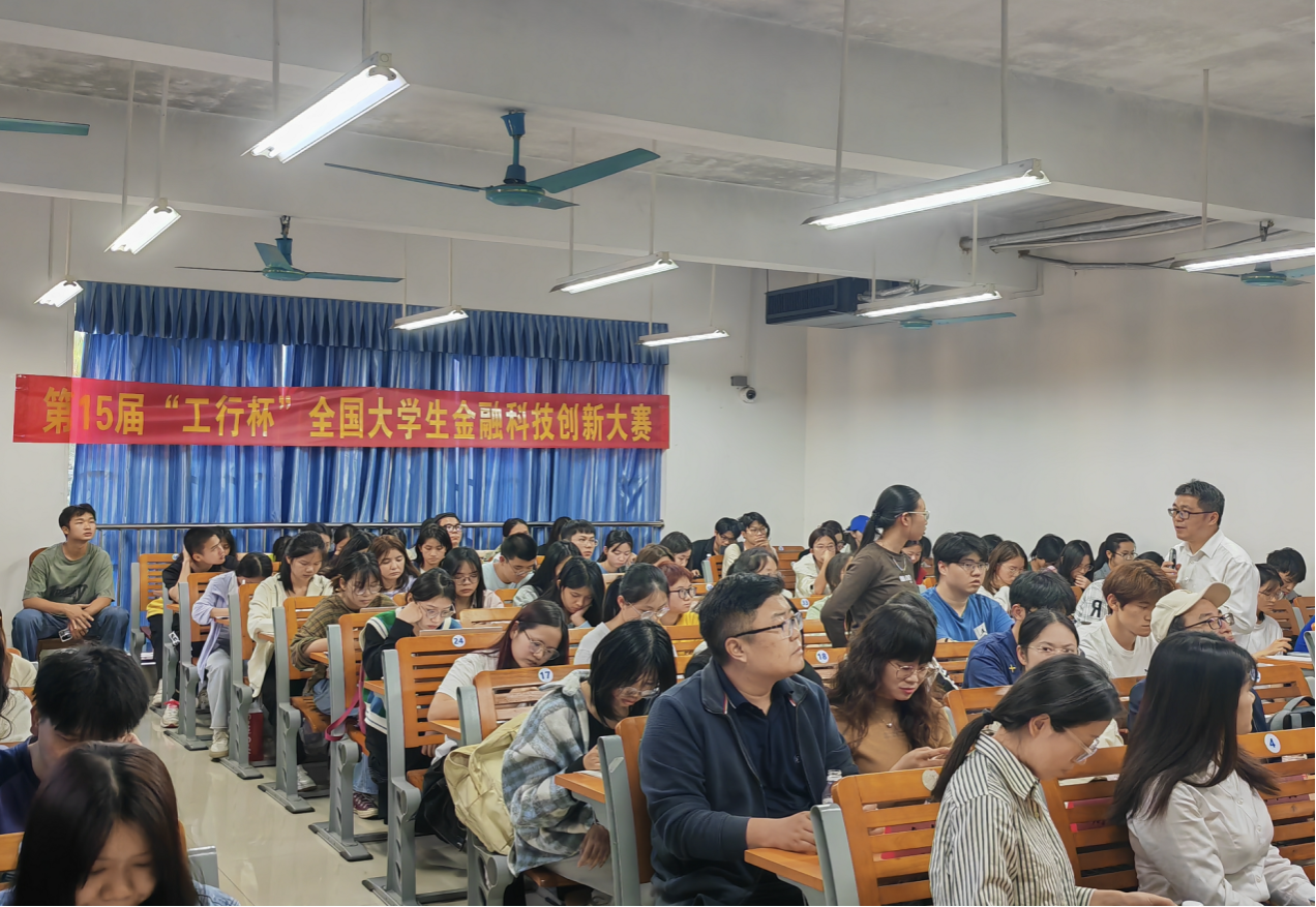 宣讲会上,韦勇经理详细介绍了大赛的背景,通过生动的案例分享和深入的行业分析,帮助同学们更好地理解创新金融科技在现实生活中的应用,激发同学们的浓厚兴趣。随后,韦勇经理与在场师生进行互动交流,耐心解答同学们关于大赛细节和选题方向的疑问,现场气氛热烈。