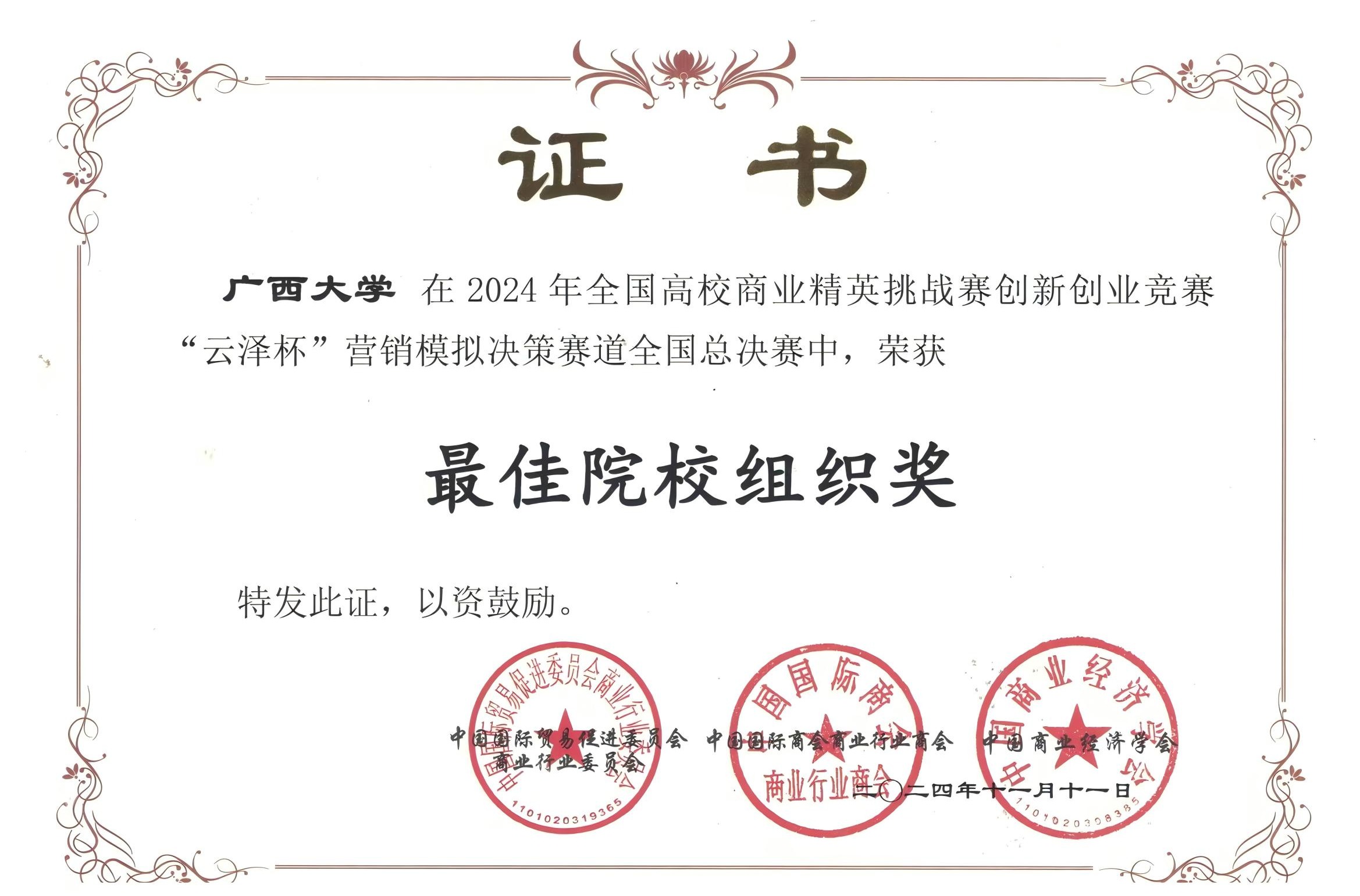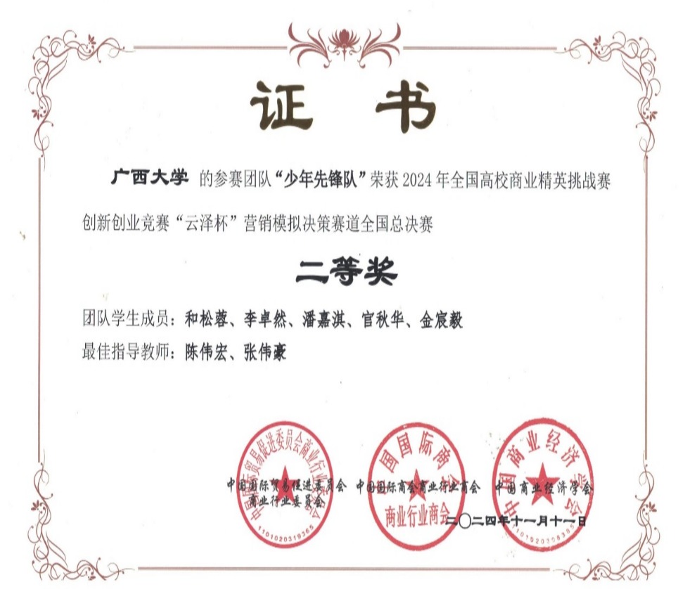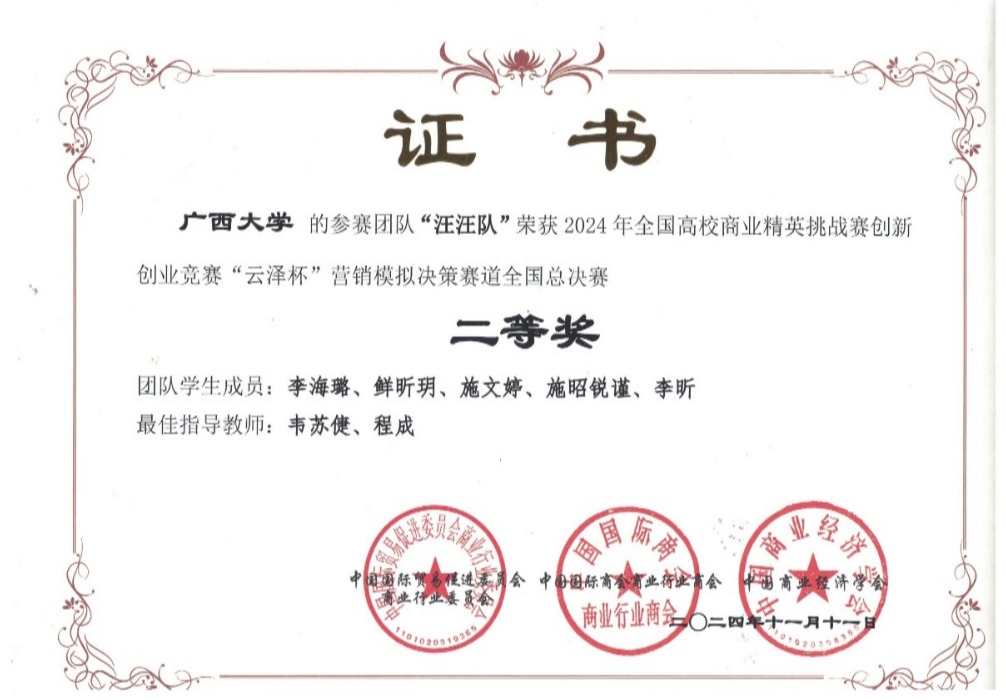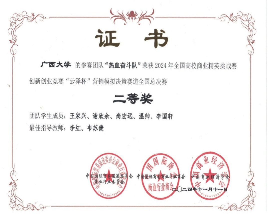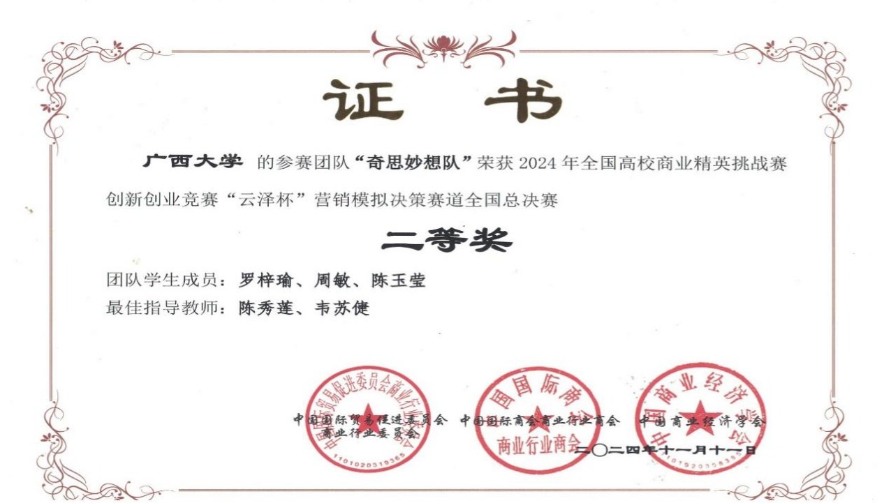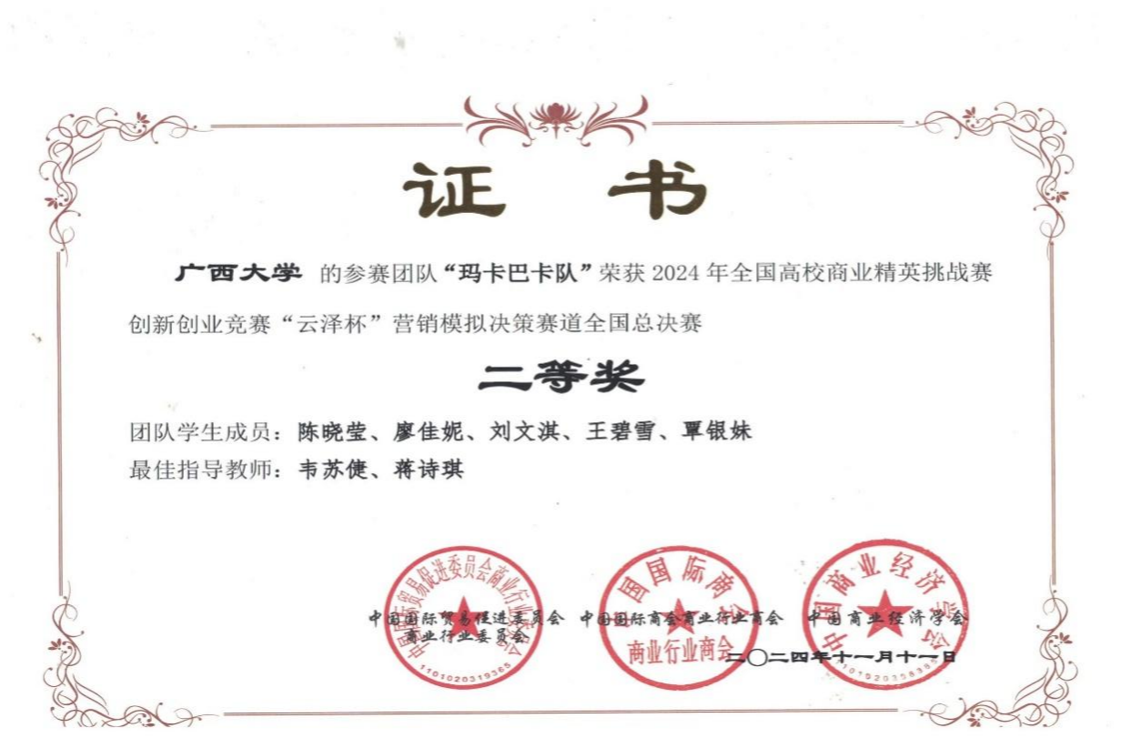 近日,2024年全国高校商业精英挑战赛创新创业竞赛“云泽杯”营销模拟决策赛道全国总决赛落下帷幕。此次竞赛共有来自全国20余个省、自治区、直辖市的400余所院校近两万名学生共同参与。经过激烈的校赛和全国预选赛比拼,蘑菇视频师生力争上游,共7支学生代表队成功晋级全国总决赛,并最终斩获七项全国赛二等奖,我校获最佳院校组织奖。