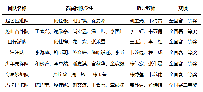 获奖名单