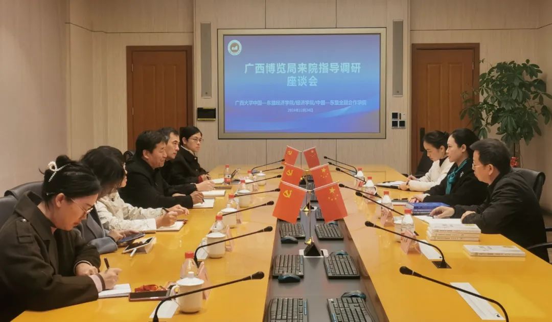 12月24日,广西博览局党组书记、局长韦朝晖率工作组到访我校。校党委书记李国忠会见了韦朝晖一行。双方就深入开展中国—东盟合作研究、智库建设和中国—东盟青年领军者成长计划等项目,做好中国—东盟博览会外事接待、翻译、志愿者等工作达成共识。