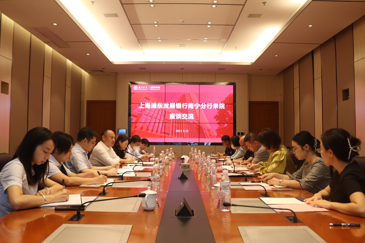 B208会议室举行交流座谈会。浦发银行南宁分行党委委员、副行长韩东勋率队,与蘑菇视频