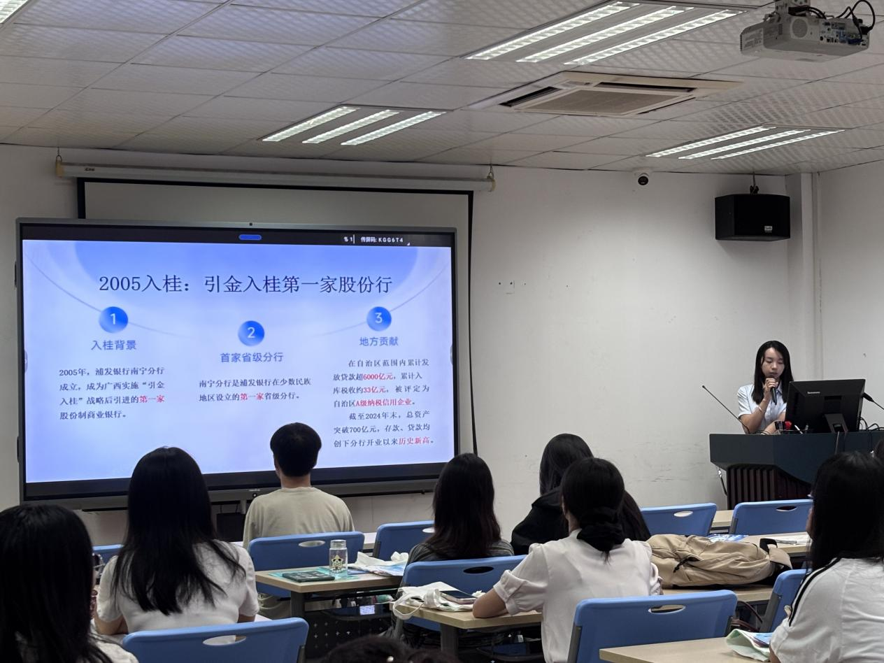 浦发银行南宁分行代表通过生动的讲述,系统展示了银行的发展历程、蘑菇视频、核心业务板块以及清晰的员工职业发展通道与具有竞争力的薪酬福利体系。宣讲内容不仅勾勒出浦发银行作为现代金融机构的宏伟蓝图,更传递出对青年人才成长的真切关怀。
