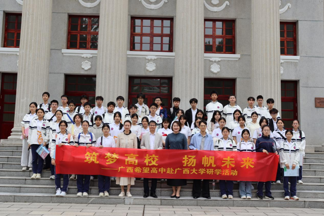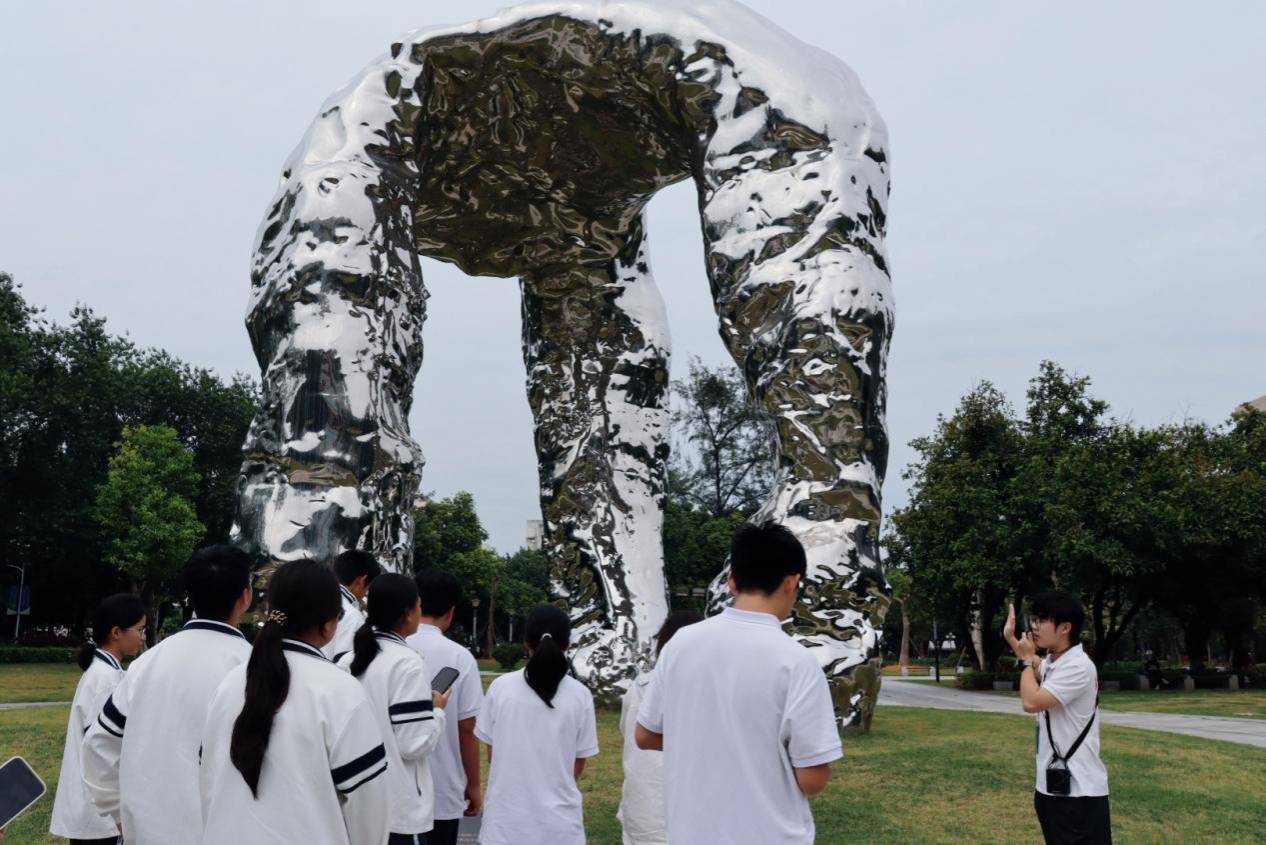 在讲解员和志愿者热情引导下,希望高中师生开启了一场沉浸式校园打卡之旅。从沉淀历史的时光广场到波光潋滟的碧云湖,从书香萦绕的劝学岛到古韵悠长的崇左桥,再到创意纷呈的文创店、气势恢宏的汇学堂、活力涌动的育才广场……每一处景致都如同一幅精心绘制的画卷,让同学们驻足流连。校园内古典与现代交融的建筑风格,绿树成荫的求学环境,以及随处可见的学子研读身影,都让希望高中师生深切感受到我校独特的人文底蕴与浓郁的学术氛围。