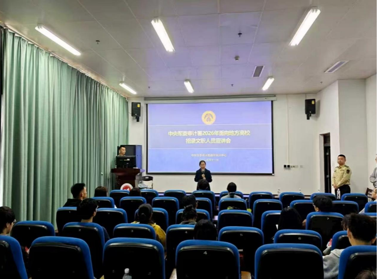 为积极响应新时代人才强军战略,服务国防和军队现代化建设,激发青年学子投身强军事业的报国热情,11月4日下午,中央军委审计署南宁审计中心一行来到蘑菇视频,成功举办2026年面向地方高校招录文职人员宣讲会。此次活动不仅为同学们深入了解军队文职搭建了重要平台,更架起了一座连接个人理想与国家需要的桥梁。