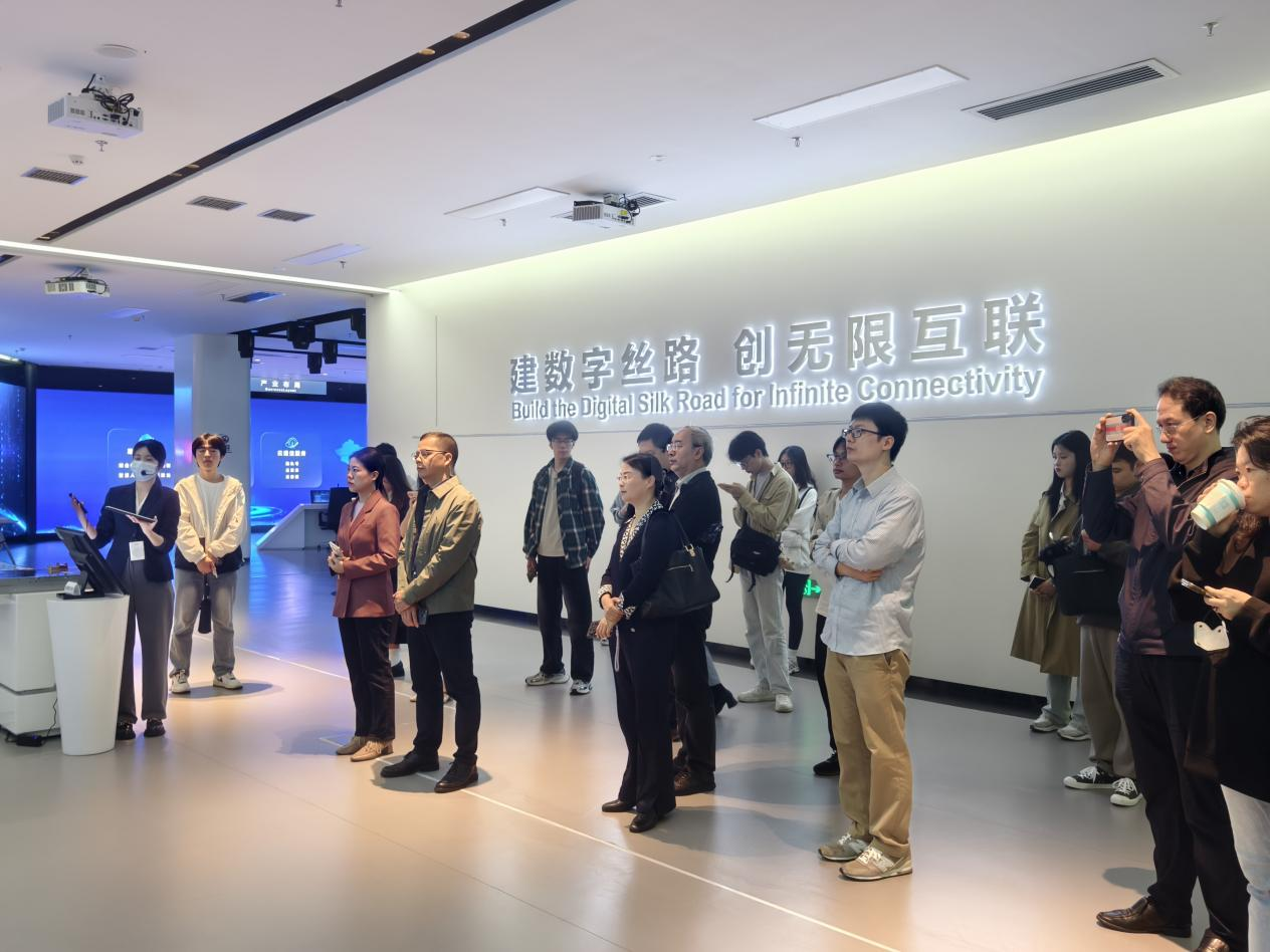 中国东信人力资源部副总经理段菲菲、产业互联网高级大客户经理于城热情接待了师生一行,带领师生参观了中国—东盟信息港股份有限公司数字经济展示中心。通过讲解,访问团了解了公司在人工智能、产业互联网、政企数字化和云通信服务等业务领域的主要发展情况,对公司开发的华建通、桂教通、泛糖网、征信云等平台,以及公司在东盟国家的国际数字合作业务有了更多的认识。