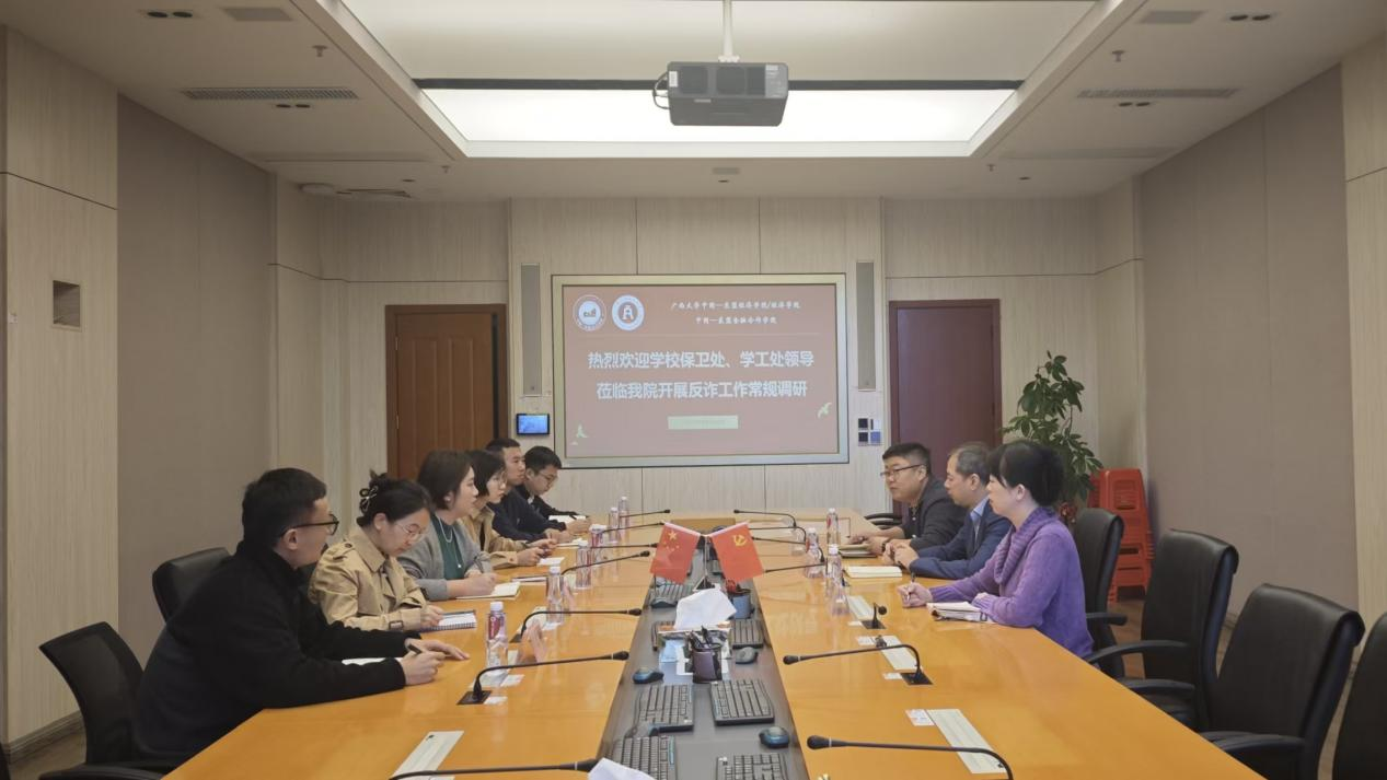 汇报了年度反诈工作成效:通过"案例警示+情景模拟"常态化教育,实现预警前置;辅导员曹魏、刘威、王海希结合工作实践,剖析了学生被骗的深层心理机制,提出"家校共振""朋辈互助"等特色做法。调研小组对此予以充分肯定。