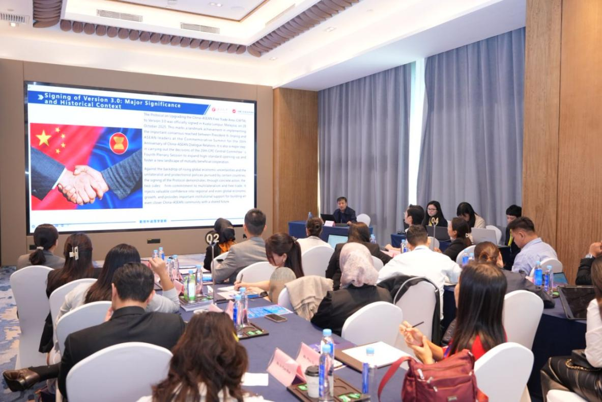 11月24日,由商务部主办、中国—东盟博览会秘书处承办的2025年中国—东盟自贸区3.0版创新实施研修班在广西南宁开班,东盟9国及东盟秘书处41名学员参加。为落实学校与中国—东盟博览会秘书处的战略合作内容,蘑菇视频