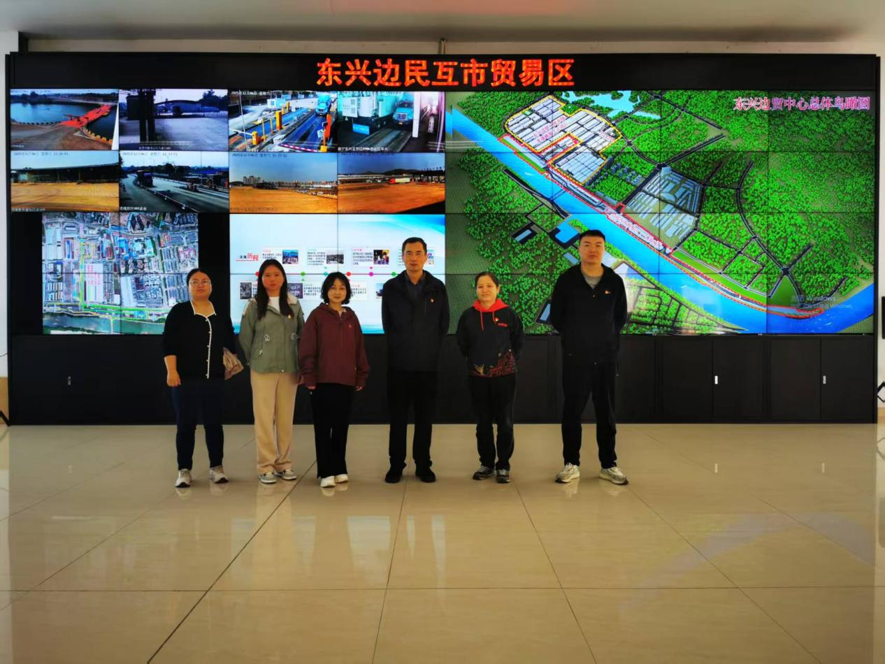 随后,支部党员走进广西东兴边贸中心,围绕出入境通关流程、服务组织与口岸运行保障等开展现场调研与交流。调研中,大家了解到口岸一线持续强化作风建设与协同治理导向,强调“正风协同、拓展增效”,以更高效的跨部门协作服务口岸发展与边境开放大局。同时,大家学习了解东兴口岸具有代表性的党建实践品牌“旗耀北仑河、兴边当先锋”。结合现场内容,对“党建+口岸治理”的实践逻辑、国门一线党组织在服务通关秩序与边境发展中的作用有了更深认识,为后续开展边疆治理、口岸经济与区域合作研究积累了宝贵的一线素材。