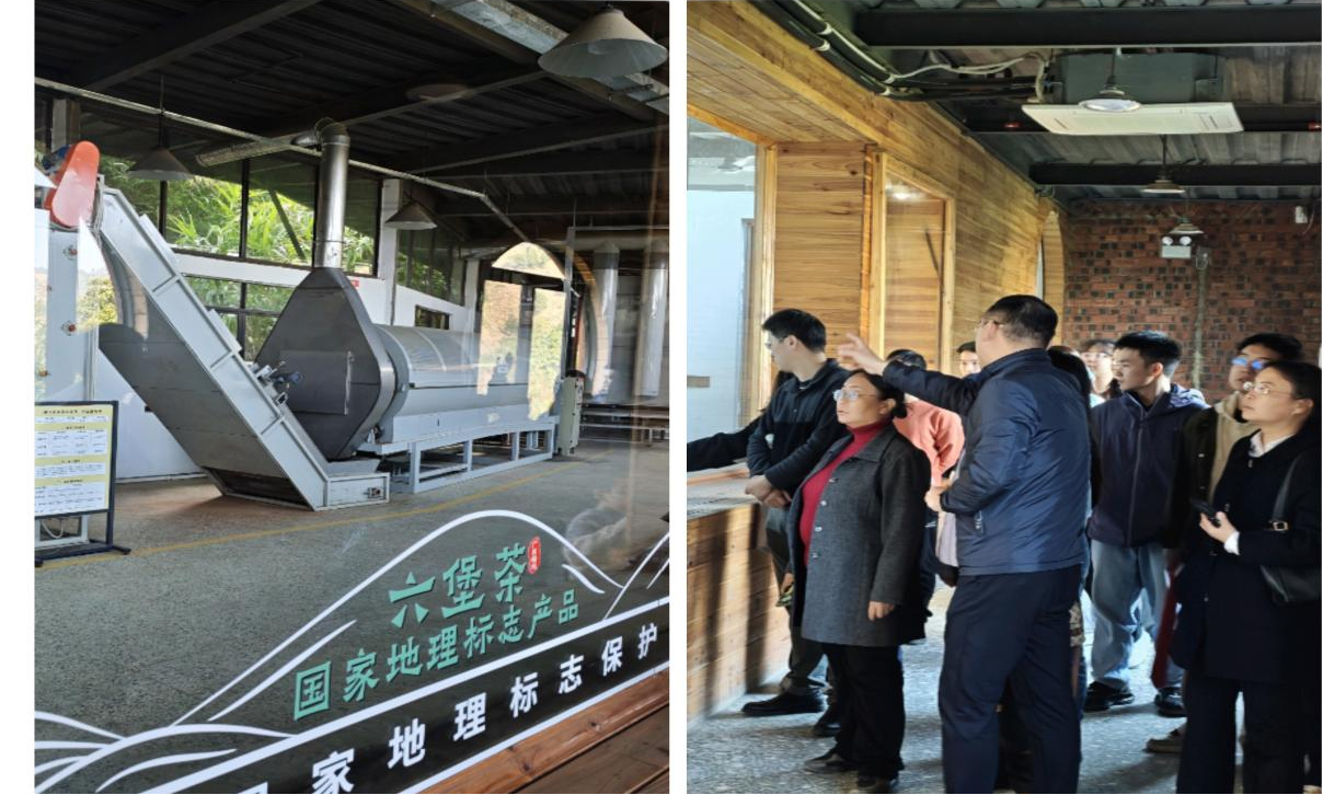 在黑石六堡茶源博园,呈现的则是另一番现代化生产景象。洁净的厂房内,自动化生产线高效运转,智能设备精准控制着发酵温湿度等关键参数,科技赋能确保了产品标准的统一和品质的稳定。传统与现代的鲜明对比与有机融合,清晰勾勒出六堡茶产业在守正中创新、在传承中发展的转型升级之路。老师们围绕标准化建设、品牌塑造、产业链延伸、跨境电商拓展等议题,与企业负责人进行了深入探讨,为特色农业产业现代化把脉问计。