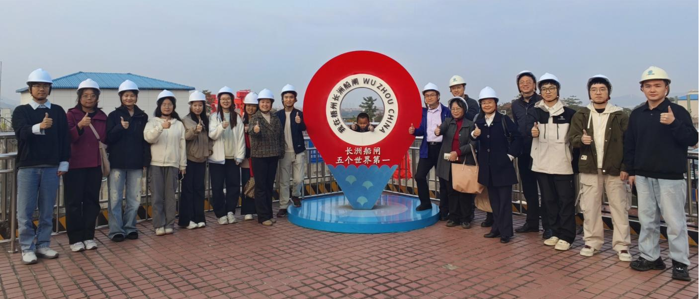 随后,大家走进西江集团梧州长洲船闸调度现场,现场考察了船闸的数字运营过程。船舶位置、闸门开关、水位变化、调度过程等场景一目了然;通过先进的智能调度系统,千里西江航道井然有序,通航效率大幅提升。党员教师们深刻感受到,现代信息技术与传统航运的深度融合,正强力驱动着这条连接粤港澳、辐射大西南、面向东盟的“水上高速公路”提质增效,是现代化基础设施体系建设的生动缩影,也为构建高效顺畅的流通体系、服务国内国际双循环提供了坚实支撑。