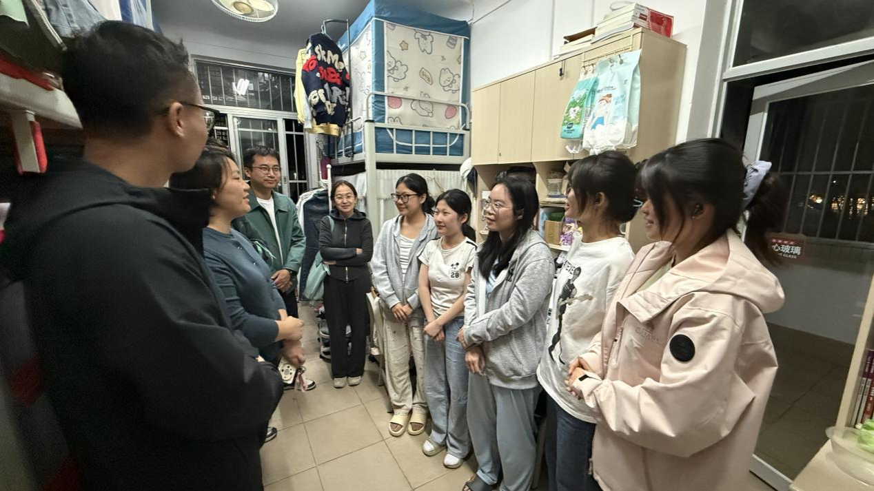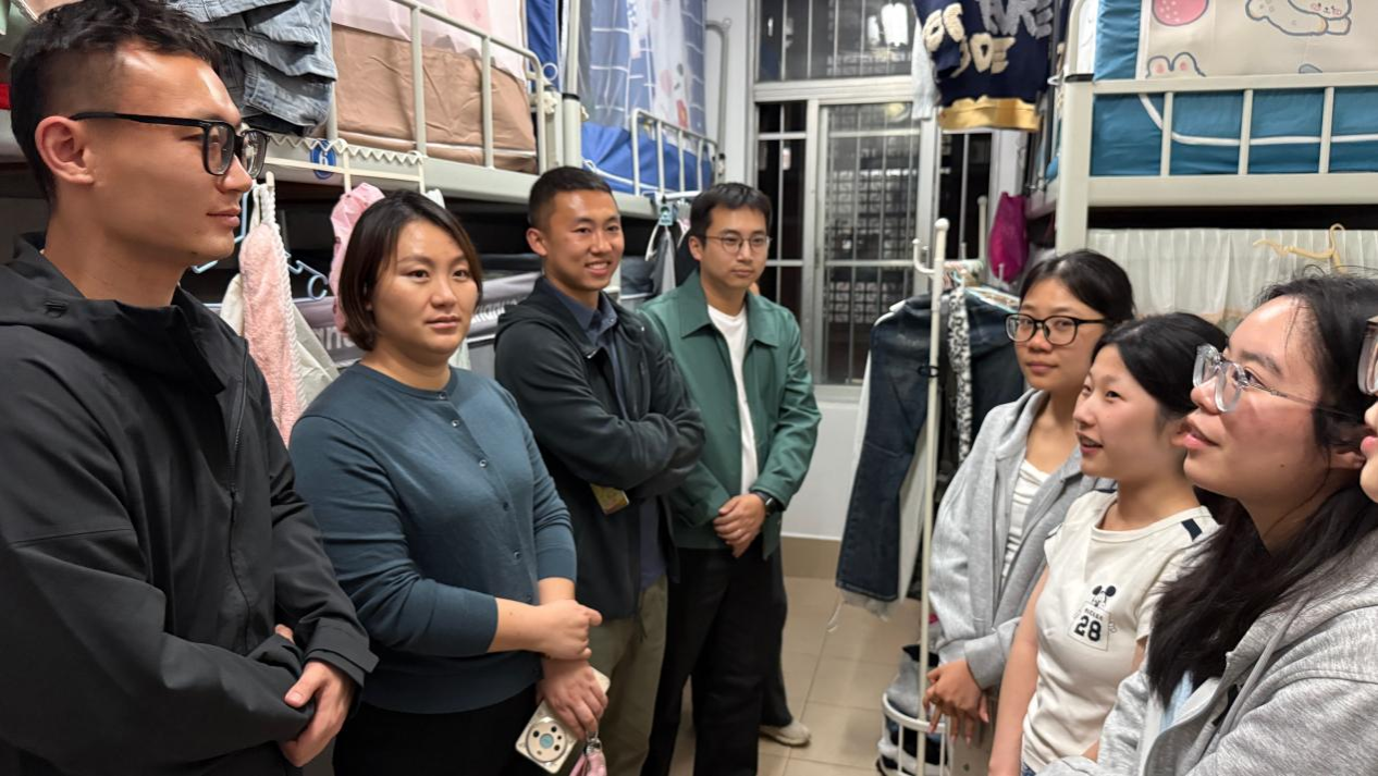 党委副书记刘梦娟、团委书记王海希及全体学工组辅导员一行深入学生宿舍开展走访慰问活动,与学生面对面交流,送去关怀与嘱托。
