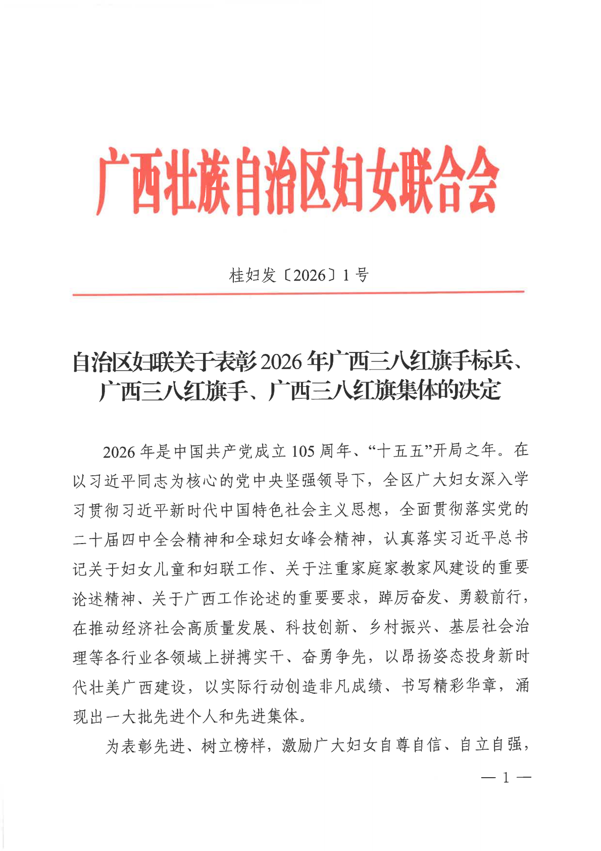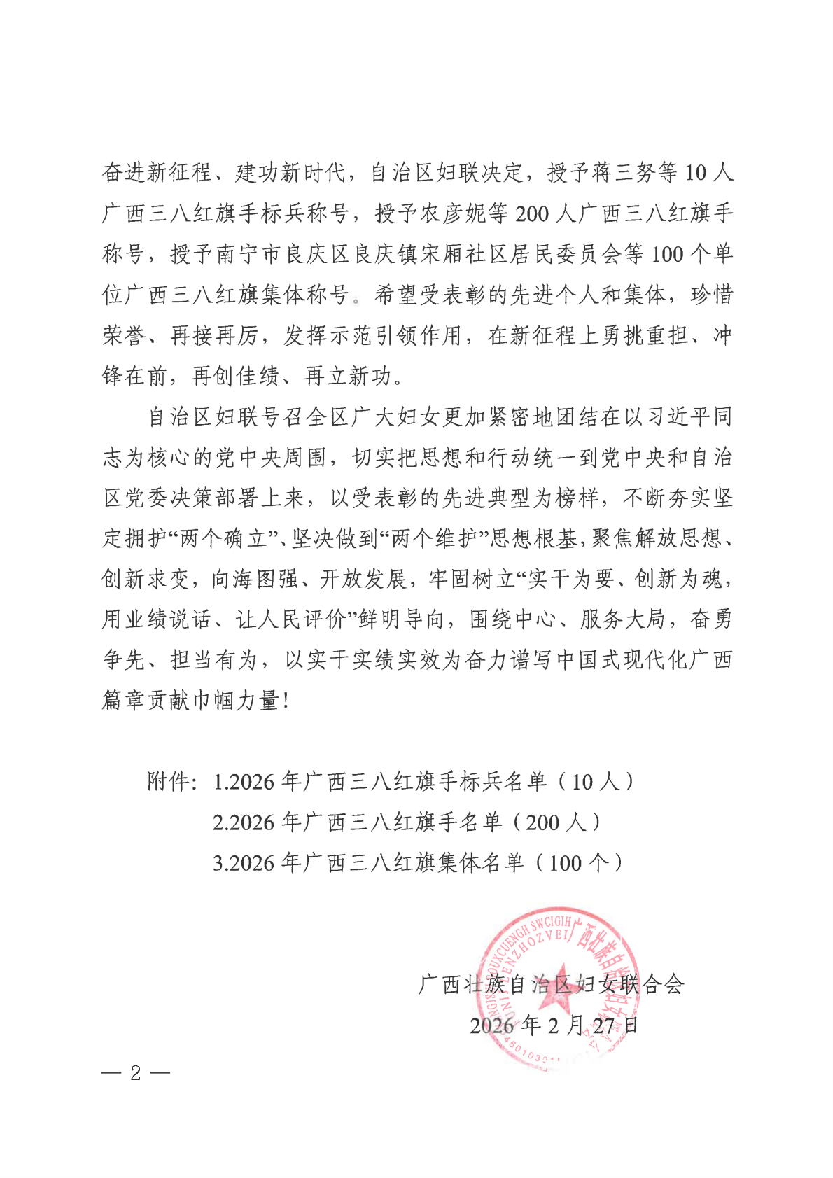 近日,广西壮族自治区妇女联合会发布《关于表彰2026年广西三八红旗手标兵、广西三八红旗手、广西三八红旗集体的决定》,蘑菇视频