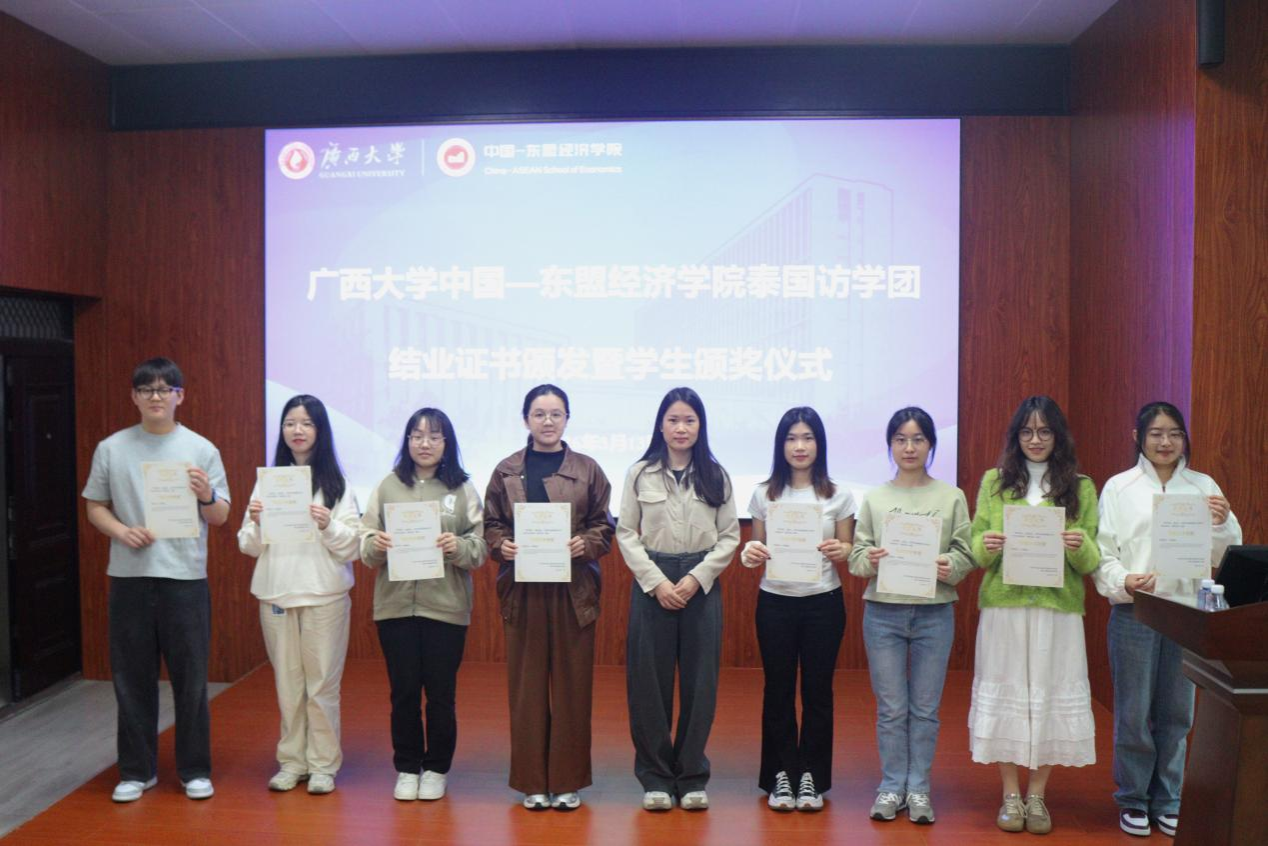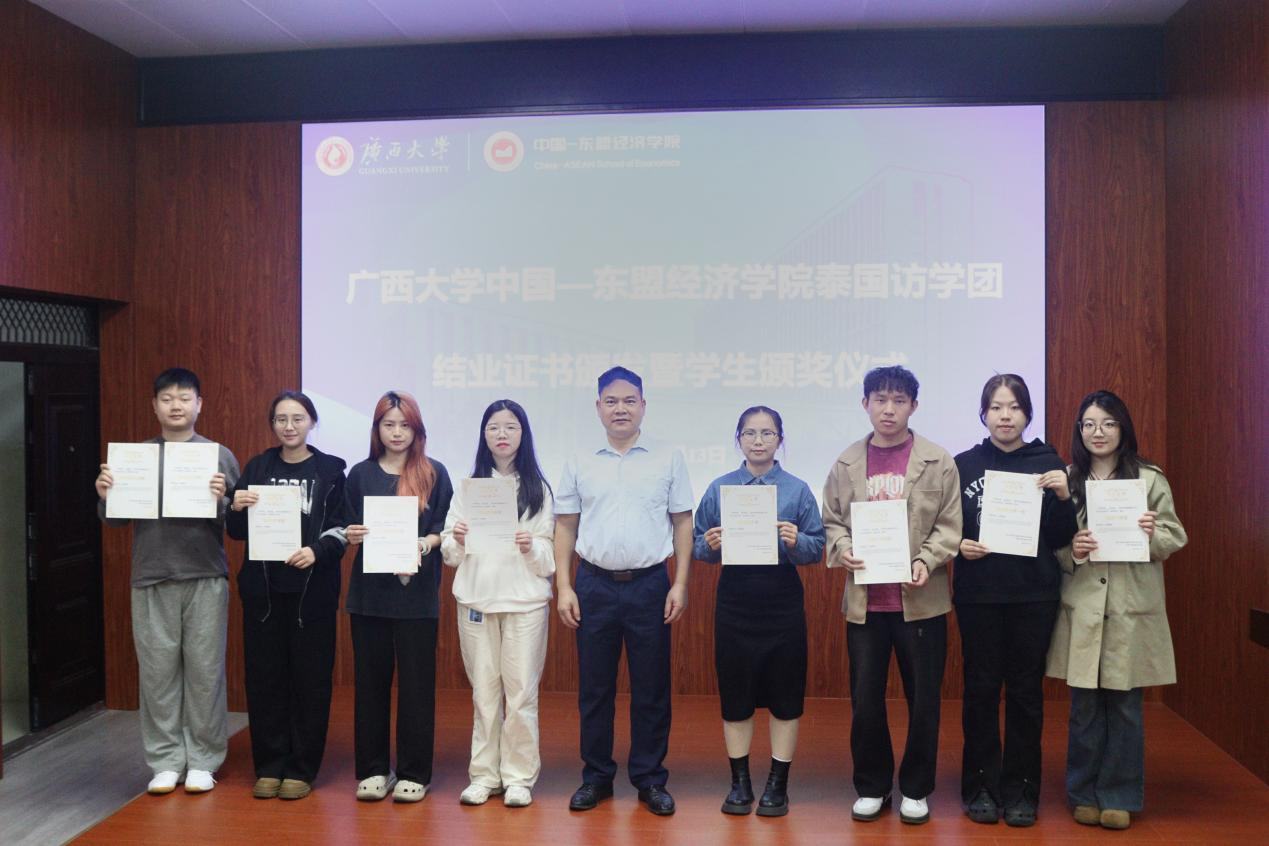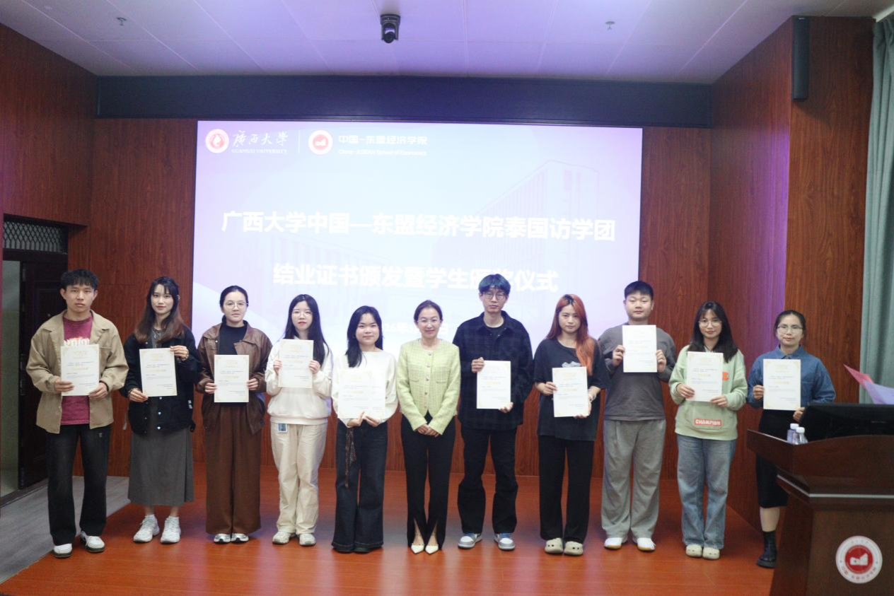 刘梦娟副书记在总结中深情寄语:这张结业证书不仅是一份荣誉,更是一份沉甸甸的责任。希望同学们带着对东盟区域经济的深刻理解,带着“中泰一家亲”的温暖记忆,在更广阔的舞台上书写无愧于时代的青春华章。